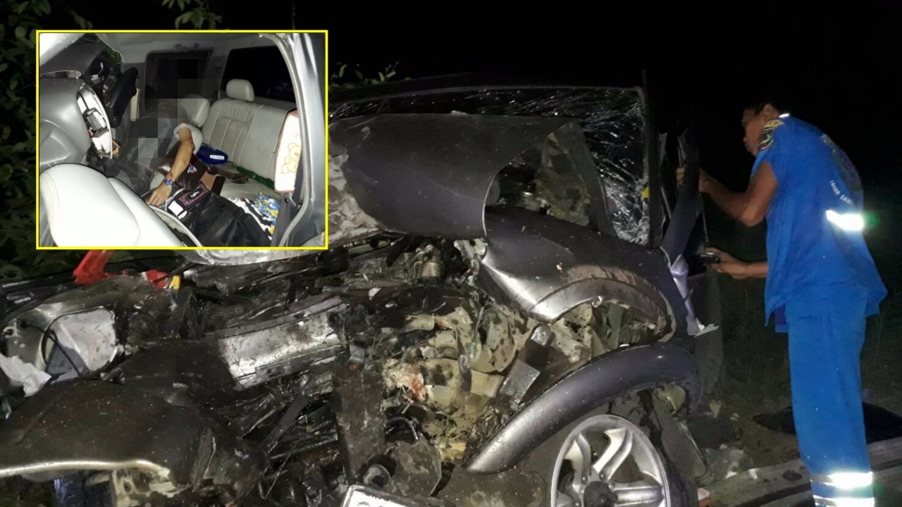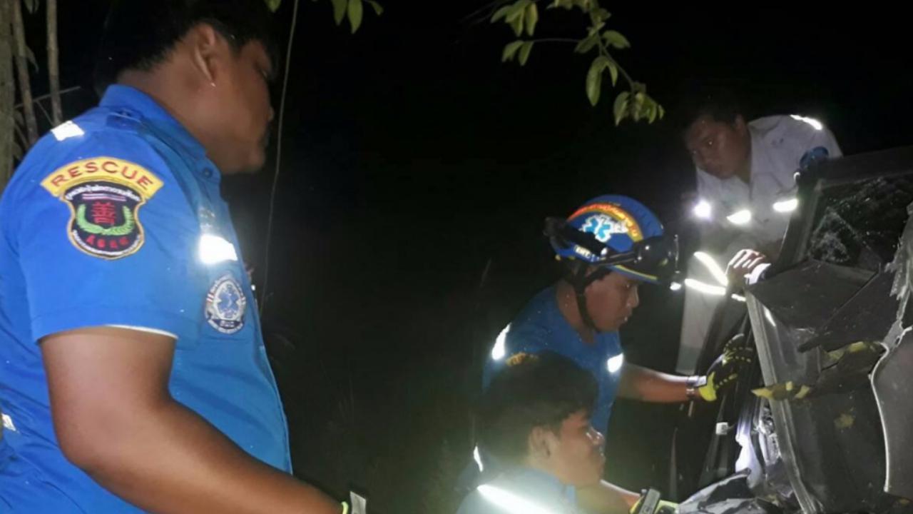 เจ้าหน้าที่กู้ภัย นำเครื่องตัดถ่างงัดร่างหนุ่มใหญ่ อัยการเมืองศรีสะเกษ ควบกระบะแหกโค้ง ถนนเส้นสังขะ จ.สุรินทร์ เสียชีวิตคาที่ หลังกำลังขับรถออกจากบ้านที่ จ.นนทบุรี ออกไปทำงาน