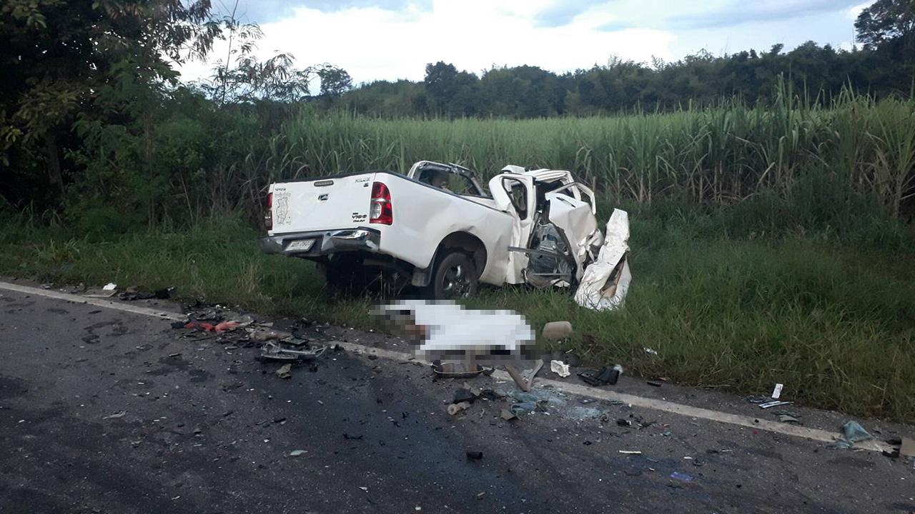 ที่เกิดเหตุเป็นถนน 2 เลน พบรถปิกอัพโตโยต้า วีโก้ สีขาว หมายเลขทะเบียน ผก 7823 อุดรธานี ตกลงไปไหล่ถนน มีรอยเฉี่ยวชนด้านหน้าพังยับเยิน พบศพนายภูเบศศ์ นามดี อายุ 34 ปี ครูโรงเรียนบ้านหนองแวง อยู่บ้านเลขที่ 39 หมู่2 ต.หนองเเวง อ.บ้านผือ จ.อุดรธานี เจ้าของรถปิกอัพ ร่างขาดครึ่ง กระเด็นออกมาตกอยู่ด้านนอกข้างรถปิกอัพ