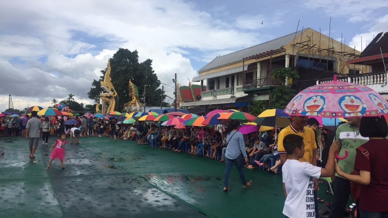 แม้ฝนเทก็มิหวั่น นักท่องเที่ยว แฟนคลับแต้ว กางร่มรอชมนางเอกสาว รำบวงสรวงบั้งไฟพญานาค ที่โพนพิสัยหนองคาย แล้วต่อด้วยการลุ้นชมปรากฏการณ์บั้งไฟพญานาคในคืนขึ้น 15 ค่ำเดือน 11...
