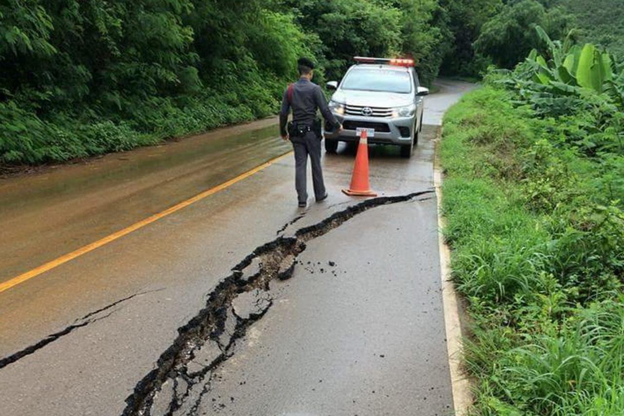 เกิดฝนตกหนักที่ อ.ท่าลี่ จ.เลย ส่งผลให้ดินอุ้มน้ำ ทำถนนระหว่างบ้านอาฮี–บ้านหนองปกติ ทรุดตัว 2 จุด ยาวร่วม 50 เมตร เจ้าหน้าที่เร่งติดป้ายเตือน หวั่นเป็นอันตรายผู้ใช้ถนน ...