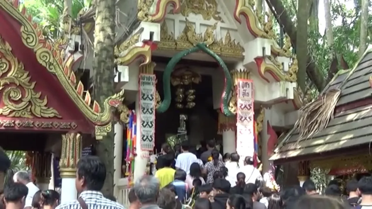 วันที่ 15 ต.ค. 60 ผู้สื่อข่าวรายงานจาก บริเวณต้นมะเดื่อยักษ์อายุหลายร้อยปี ภายในเกาะคำชะโนด วังนาคินทร์ดินแดนพญานาคราช บ้านโนนเมือง ต.บ้านม่วง อ.บ้านดุง จ.อุดรธานี ว่า วันนี้เป็นวันสุดท้ายในวันหยุดยาว ประกอบกับใกล้วันหวยออก จึงมีนักท่องเที่ยวแห่มากราบไหว้ปู่ศรีสุทโธ แม่ย่าศรีปทุมมา มากเป็นพิเศษ