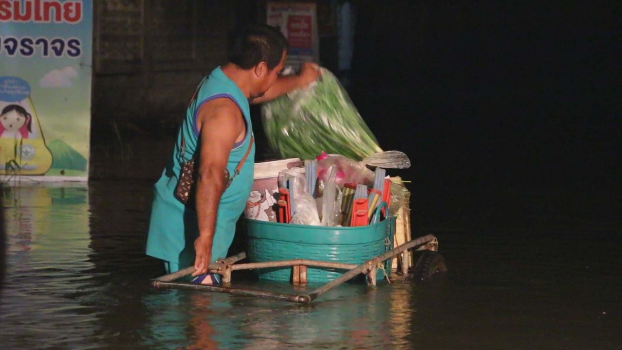 นายสมบูรณ์ ศรีโนนม่วง อายุ 51 ปี ชาวบ้านห้วยซัน บอกว่า น้ำท่วมครั้งนี้ลำบากมาก โดยเฉพาะการเดินทางเข้าออกหมู่บ้าน เพื่อไปทำงานในเมือง ต้องอาศัยเรือ หรือไม่ก็เดินลุยน้ำเอา เพราะรถยนต์ไม่สามารถวิ่งเข้าออกหมู่บ้านได้ วันนี้ตนต้องมาซื้ออาหารจำนวนมาก เพื่อเก็บไว้รับประทานหลายวัน เนื่องจากไม่สะดวกในการเดินทางไปซื้อหาอาหารเหมือนภาวะปกติ