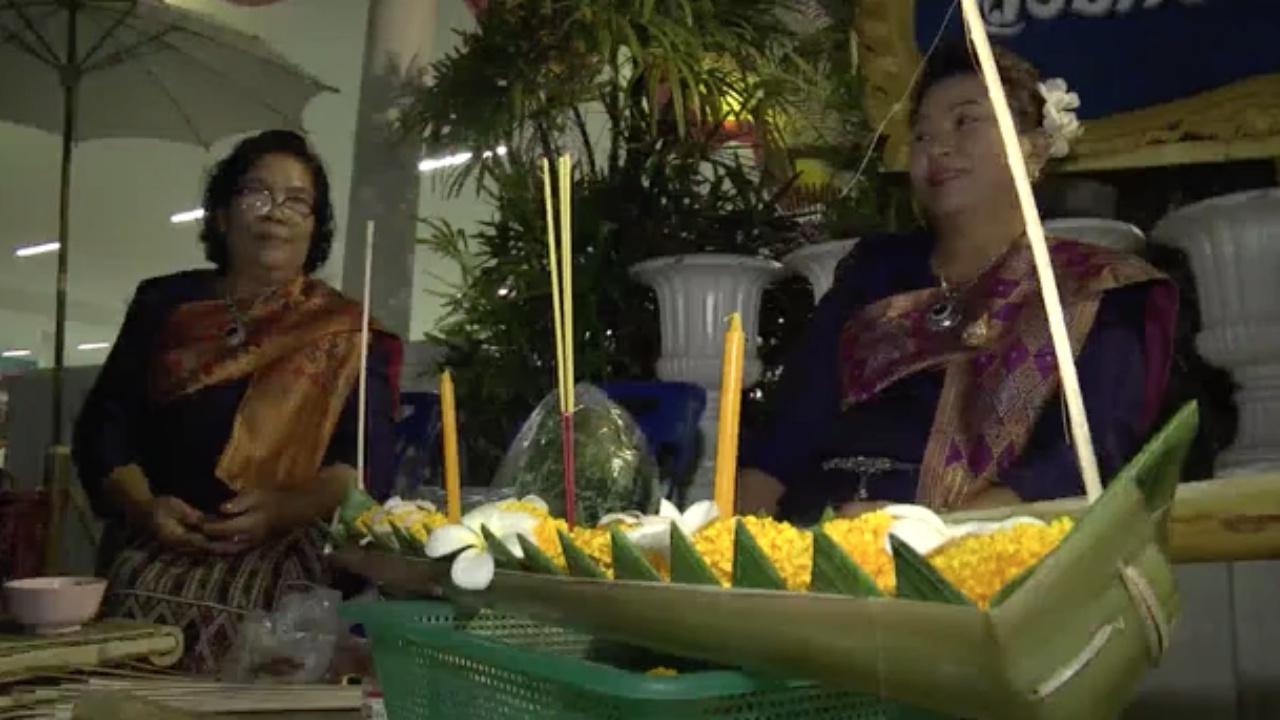 สำหรับบรรยากาศภายในงานแถลงข่าว มีชาวบ้านเชื้อสายชาวไทญ้อ ที่อยู่กันเป็นชุมชนใหญ่ในบ้านท่าขอนยาง ตำบลท่าขอนยาง มาร่วมสาธิตการทำกระทงกาบกล้วยใบตองสาย ซึ่งสืบทอดการทำแบบดั้งเดิมมาตั้งแต่รุ่นปู่ยา ตายาย จะใช้ลอยภายในงานวันที่ 3 พฤศจิกายนด้วย โดยรูปร่างหน้าตาของกระทงกาบกล้วยใบตองสาย ใช้กาบกล้วยความยาวประมาณ 1 เมตร นำมามัดหัวมัดท้าย จากนั้นมัดใบตองรูปสามเหลี่ยมแล้วนำมาร้อยเรียงทำกลีบใบตองสายรอบกาบกล้วย ประดับด้วยดอกไม้ นำข้าวดำ ข้าวแดง ข้าวขาว ที่ผ่านพิธีกรรม เช่น ข้าวดำที่ผู้เฒ่าในหมู่บ้านจะปลุกเสกเอาไว้ให้ลูกหลานนำไปทำพิธีจ้ำตามร่างกาย หรือเรียกว่าพิธีสะเดาะเคราะห์นำสิ่งที่ไม่ดีในร่างกาย เอามาใส่ไว้ในกระทงให้ลอยไปกับสายน้ำ