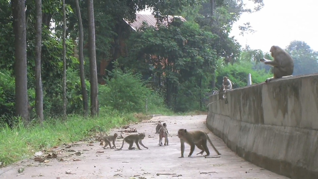 มุกดาหารเจออากาศที่หนาวเย็นลง กระทบกับฝูงลิงที่อาศัยอยู่ในบริเวณ วัดป่าศิลาวิเวก พอตอนเช้าต้องพากันออกมาตากแดดบรรเทาความหนาวเป็นกลุ่มๆ บางตัวก็จับกลุ่มกอดกันเพื่อให้ความอบอุ่น...