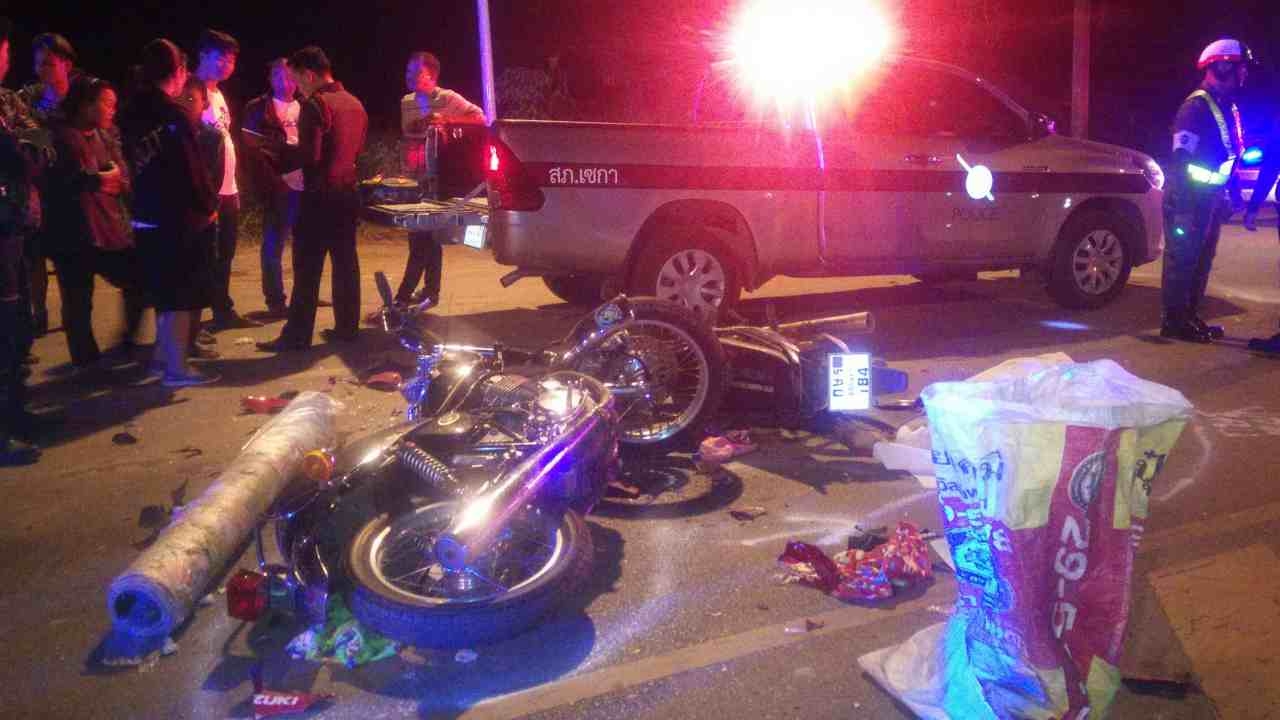 เมื่อวันที่ 3 พ.ย. 60 ร.ต.อ.เทียนชัย ยุรปัทมการ รอง.สว.(สอบสวน) สภ.เซกา จ.บึงกาฬ รับแจ้งมีเหตุจักรยานยนต์ชนกันที่ถนนหลวง 2026 ถนนเซกา-บึงโขงหลง จึงพร้อมด้วยเจ้าหน้าที่รุดไปที่เกิดเหตุ