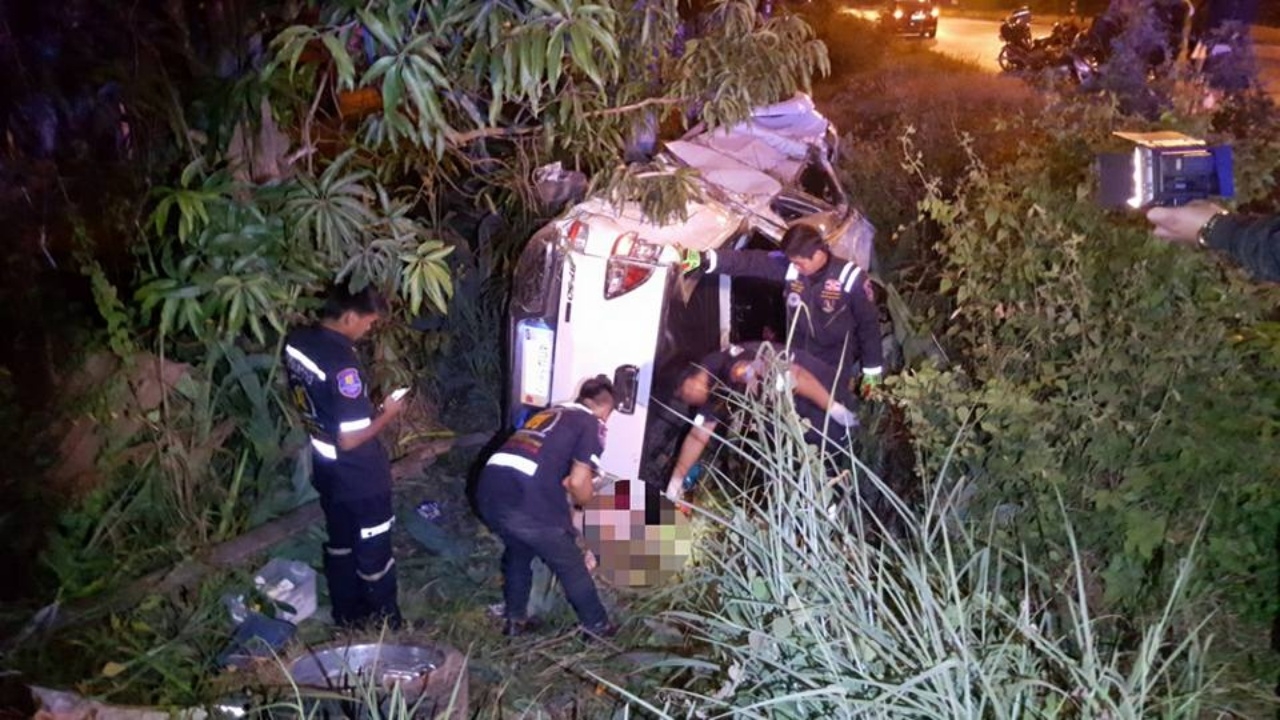 หนุ่มชาวเรณูนคร รับเพื่อนชาวลาวพาไปเที่ยวขากลับ ซิ่งรถกระบะ 4 ประตู หลุดโค้งแหกโค้ง 100 ศพ อ.ธาตุพนม สาวลาวถูกรถทับดับ บาดเจ็บอีก 4 คาดเมา ประมาท...