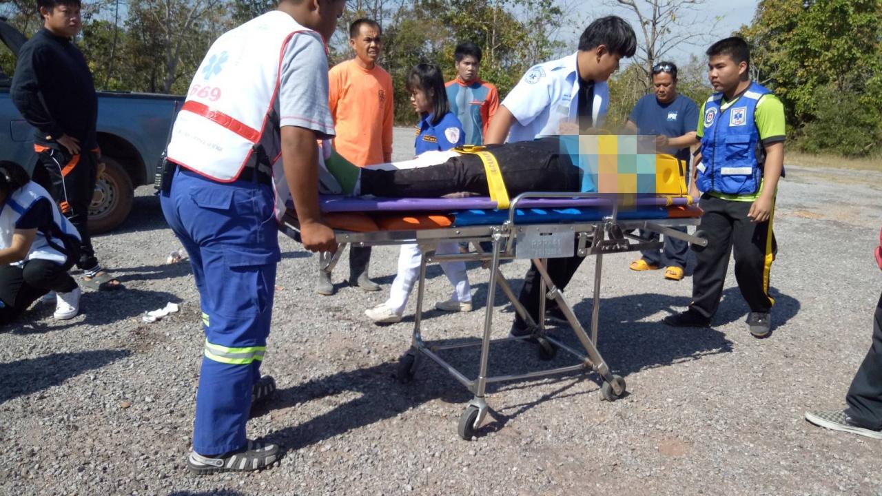 ตรวจสอบพบผู้ได้รับบาดเจ็บ เป็นหญิง 1 ราย อยู่ใกล้ที่เกิดเหตุ มีบาดแผลบริเวณขาขวาและศีรษะ เจ้าหน้าที่จึงช่วยกันนำส่งไปรักษาที่โรงพยาบาลอำเภอนาแก ทราบชื่อภายหลัง คือ น.ส.กัลยานิษฐ์ เพียงสูงเนิน อายุ 45 ปี ซึ่งเป็นภรรยาของคนขับ ส่วนคนขับทราบชื่อ คือ นายวิเชียร อุปนิ อายุ 56 ปี ชาว อ.บ้านไผ่ จ.ขอนแก่น ไม่ได้รับบาดเจ็บ และผู้โดยสารนั่งมาในรถประมาณ 3 คน ปลอดภัย