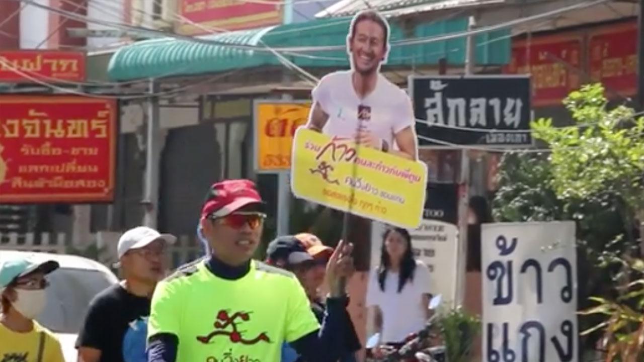 ผู้สื่อข่าวจึงได้เข้าไปสอบถาม ทราบชื่อคือนายชาญชัย ธรรมจรรยา อายุ 44 ปี อยู่บ้านเลขที่ 3/10 หมู่ 12 บ้านโนนชัย ต.ในเมือง อ.เมือง จ.ขอนก่น บอกกับผู้สื่อข่าวว่า รู้สึกดีใจที่วันนี้ได้ร่วมทำบุญครั้งใหญ่กับศิลปินที่ตนเองชื่นชอบอย่างมาก คือตูน บอดี้สแลม ซึ่งที่ผ่านมามีคนเคยบอกว่าตนเองหน้าตาคล้ายกับตูน และตนเองก็ชอบร้องเพลงของพี่ตูนด้วย ทำให้ในวันนี้มีคนแห่มาขอถ่ายรูปเซลฟี่ด้วยเป็นจำนวนมาก นอกจากนี้อยากจะเชิญชวนให้คนไทยมาร่วมทำบุญครั้งใหญ่ในโครงการก้าวคนละก้าว ซึ่งเหลือระยะทางอีกไม่นานก็จะครบ ซึ่งขณะนี้ยังมีเวลา ร่วมกันบริจาคตามกำลังที่เรามี เพื่อสร้างประโยชน์ให้กับคนทั้งประเทศ.