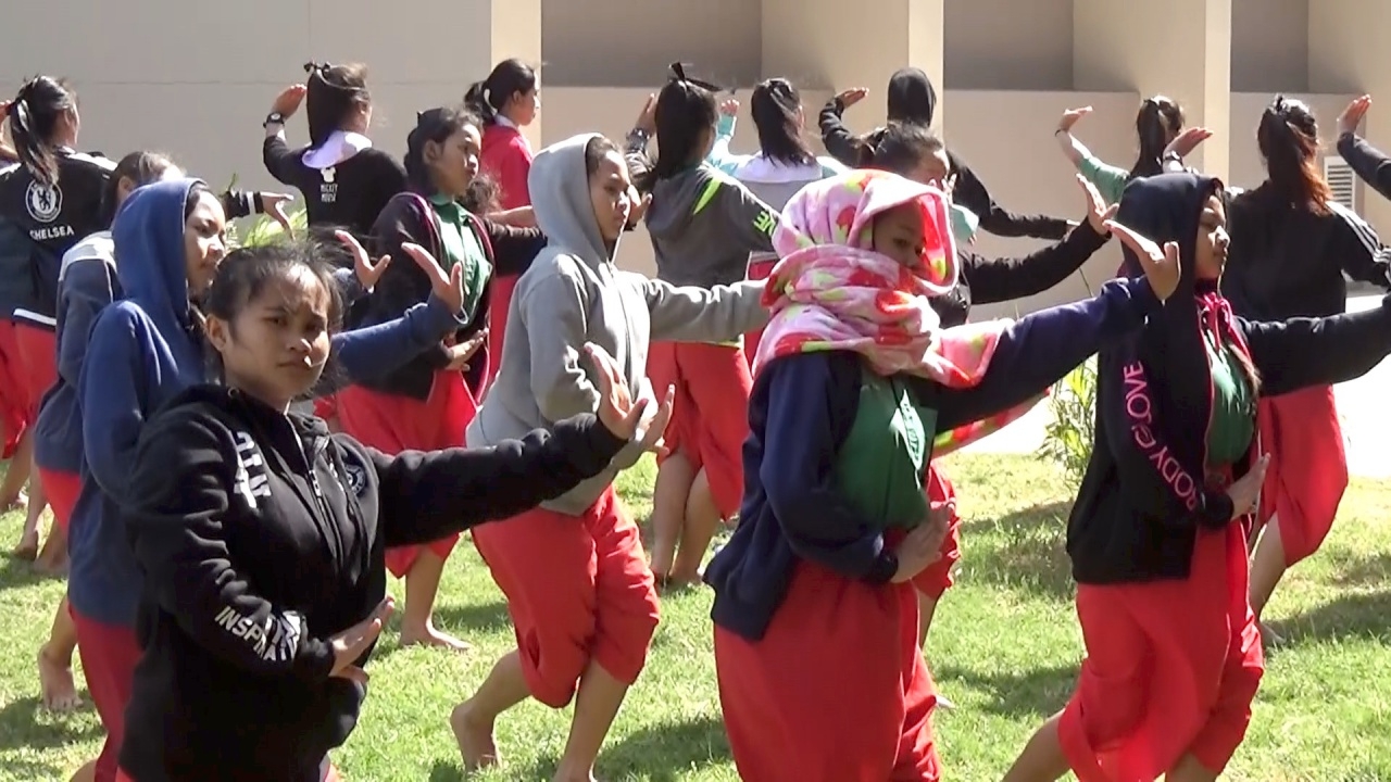 ขณะที่บรรดานักเรียน ต่างบอกว่า ช่วงนี้อากาศเย็นมาก ต้องสวมเสื้อกันหนาว ผ้าพันคอ ให้ความอบอุ่น เวลาเรียนรำมือแข็ง จะส่งผลต่อการเรียน ซึ่งการเรียนรำ เรียนโขน กลางแดดอ่อนๆ ได้ทำให้คลายหนาว และไม่ต้องเสียการเรียนอีกด้วย.