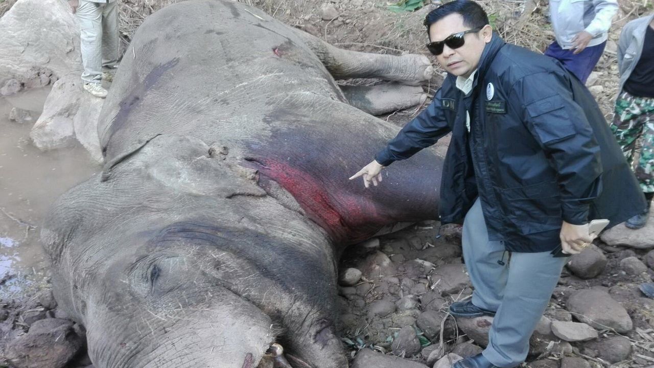 ขาใหญ่ต่อสู้แย่งชิงพื้นที่!! พบช้างป่าภูหลวงอายุ 20 ปี นอนตายโดยมีบาดแผลตามลำตัว ลักษณะโดนงาช้างแทง 12 แผล ซึ่งคาดว่าช้างน่าจะต่อสู้แย่งพื้นที่หากิน...