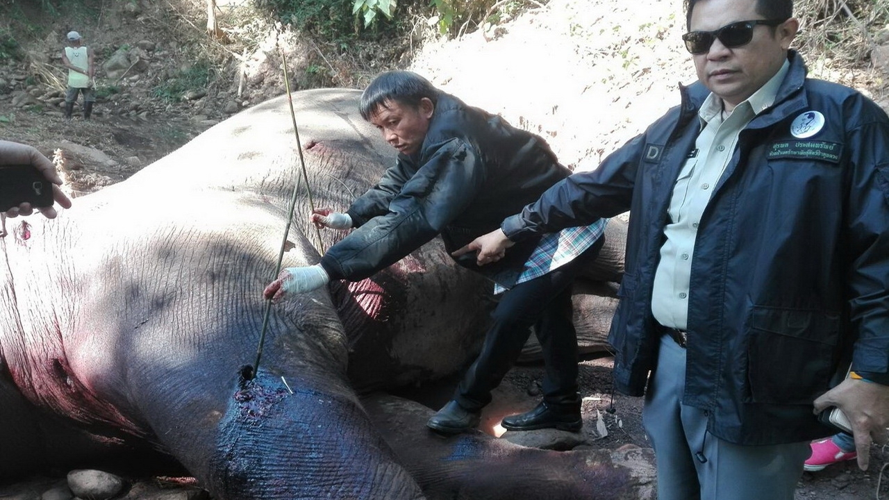 จนเมื่อเช้านี้ว่าที่ ร.ต.สุรพล ประสมทรัพย์ พร้อมด้วยนายวัชระ ธรรมสอน เจ้าพนักงานป่าไม้ชำนาญงาน นายคณายศ กริอุณะ นายสัตวแพทย์ชำนาญการ สำนักงานปศุสัตว์ จ.เลย นายอนุพงศ์ คำภูแก้ว นายอำเภอวังสะพุง และชาวบ้านเดินทางไปตรวจสอบที่เกิดเหตุ พบช้างป่าเพศผู้ อายุกว่า 21-22 ปี หนักประมาณ 3 ตันหรือ 3,000 กก. นอนตายบริเวณใกล้จุดสกัดห้วยตะครัว ลำตัวมีบาดแผล ลักษณะถูกงาช้างแทงตามลำตัวจำนวน 12 แผล ลึกประมาณ 39 ซม. ตายมาแล้ว 6 ชม. สันนิษฐานการตายว่า ช้างลงมาหากินบริเวณดังกล่าว 7-8 ตัว เกิดการแย่งชิงพื้นที่จนเกิดการต่อสู้กันจนตาย สัตวแพทย์ได้เก็บตัวอย่างจากงวง ปลายลิ้น ขนหาง เพื่อตรวจพิสูจน์ต่อไป.