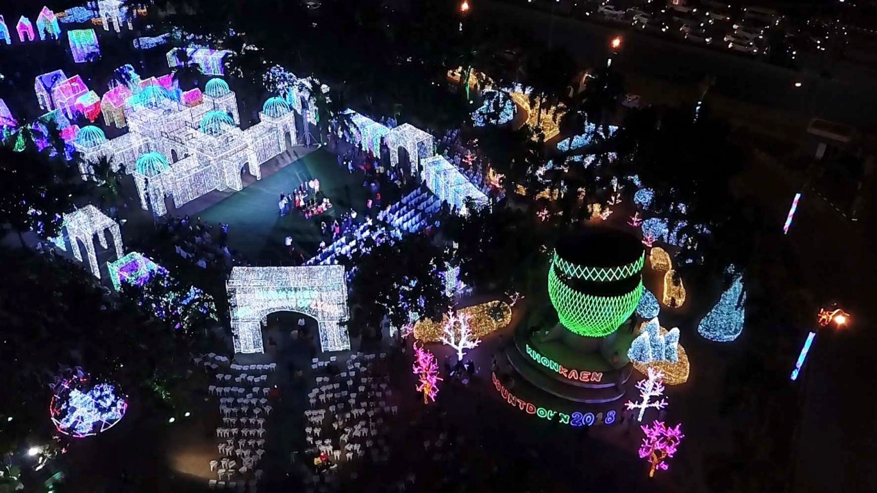 เปิดแล้ว สวนเรืองแสงสุดอลังการ ภายใต้แนวคิด เบิกบานทั่วหล้า ด้วยไฟแสงสีกว่า 100,000 ชุด รองรับนักท่องเที่ยวที่จะมาร่วมงานเคาท์ดาวน์ 2018 พร้อมโชว์การแสดงแสงไฟประกอบจังหวะเพลง ไลท์แอนด์ซาวด์ “KhonKaen The Kingdom of Linght” วันละ 2 รอบ.