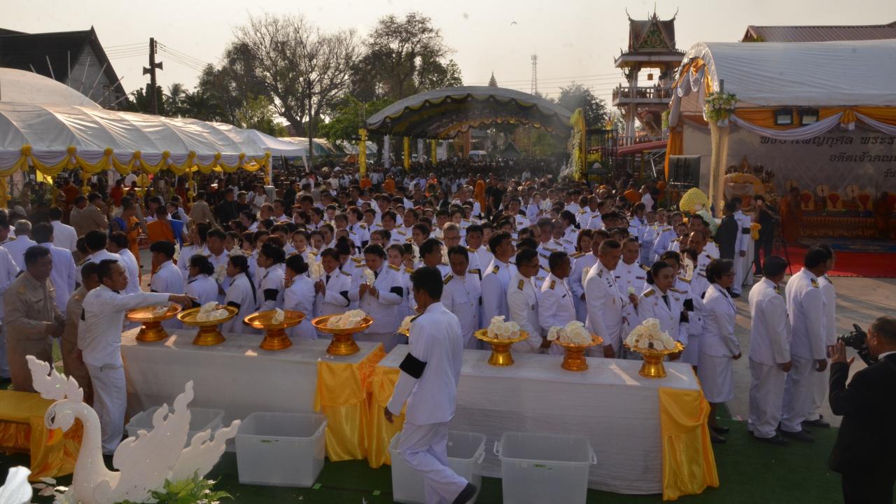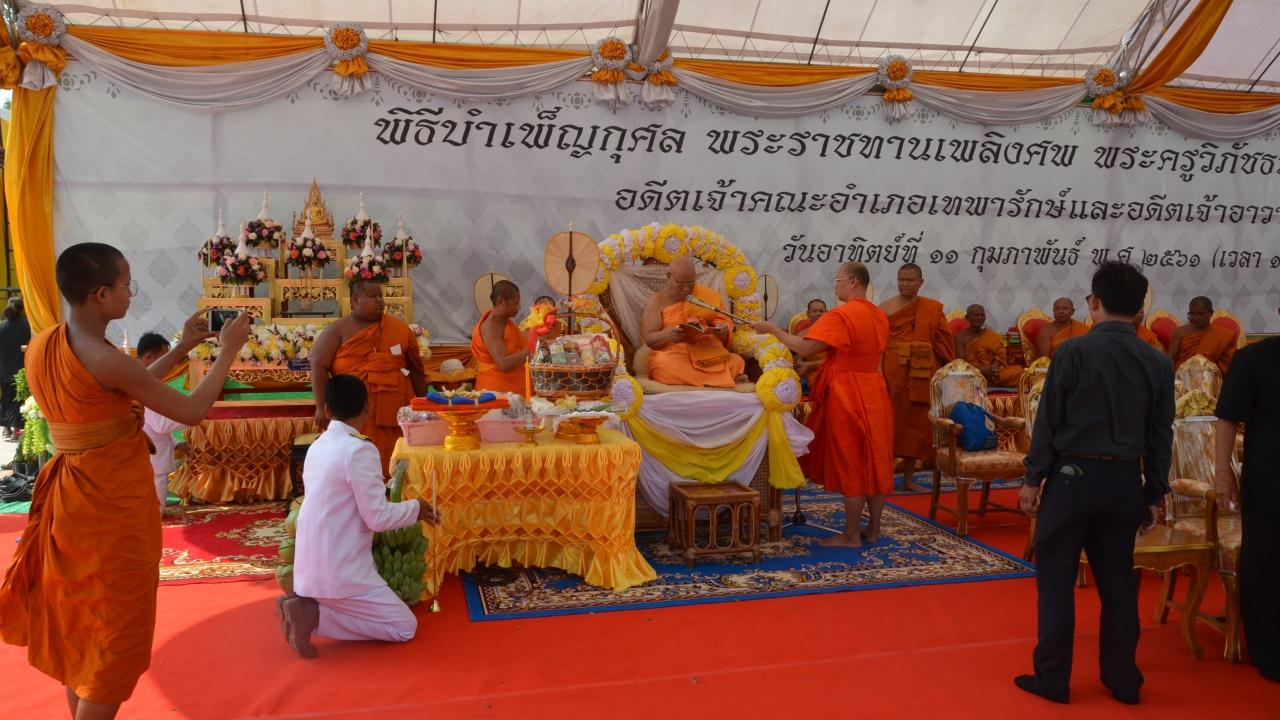 โดยมี พระภิกษุ-สามเณร กว่า 500 รูป และมี นายเดชฤทธิ์ ถิตย์ฉาย นอภ.เทพารักษ์ พ.ต.อ.ไพบูลย์ วาสนาม ผกก.สภ.เทพารักษ์ อดีต นอภ. อดีต ผกก.เทพารักษ์ อีกหลายคน รวมทั้ง นอภ.และ ผกก.เขตใกล้เคียงอีกหลายคน หน.ส่วนราชการ กำนัน-ผู้ใหญ่บ้าน นายก อบต. ผู้นำท้องถิ่น นักเรียน นักศึกษา ในอำเภอเทพารักษ์พร้อมด้วยศิษยานุศิษย์ที่เคารพนับถือ ที่หลั่งไหลมาจากทั่วสารทิศทั่วประเทศ กว่า 2 หมื่นคน มาร่วมพิธีครั้งนี้อย่างคับคั่ง จนไม่มีที่จอดรถ ต้องไปจอดไกลหลาย กม. สภ.เทพารักษ์ และวัดสำนักตะคร้อ ต้องหารถตู้ 2 คัน ให้บริการกับคนที่จอดรถไกล โดยสารเดินทางไป วัดสำนักตะคร้อ