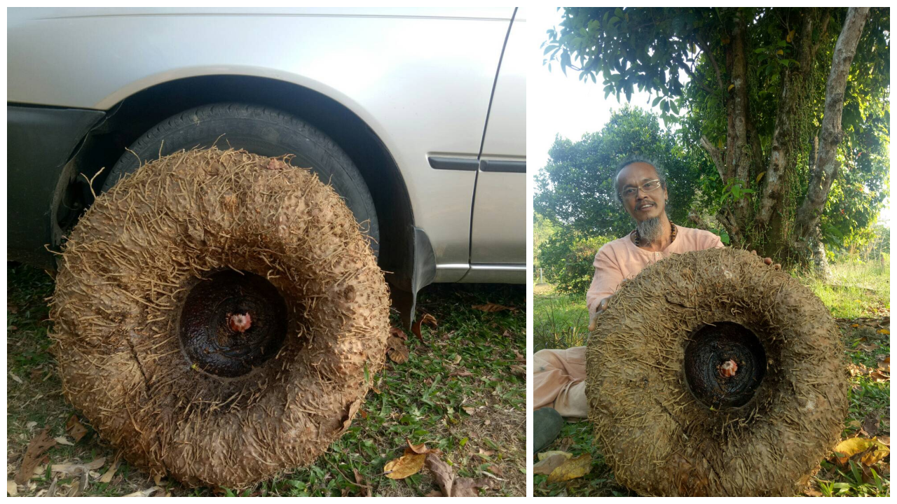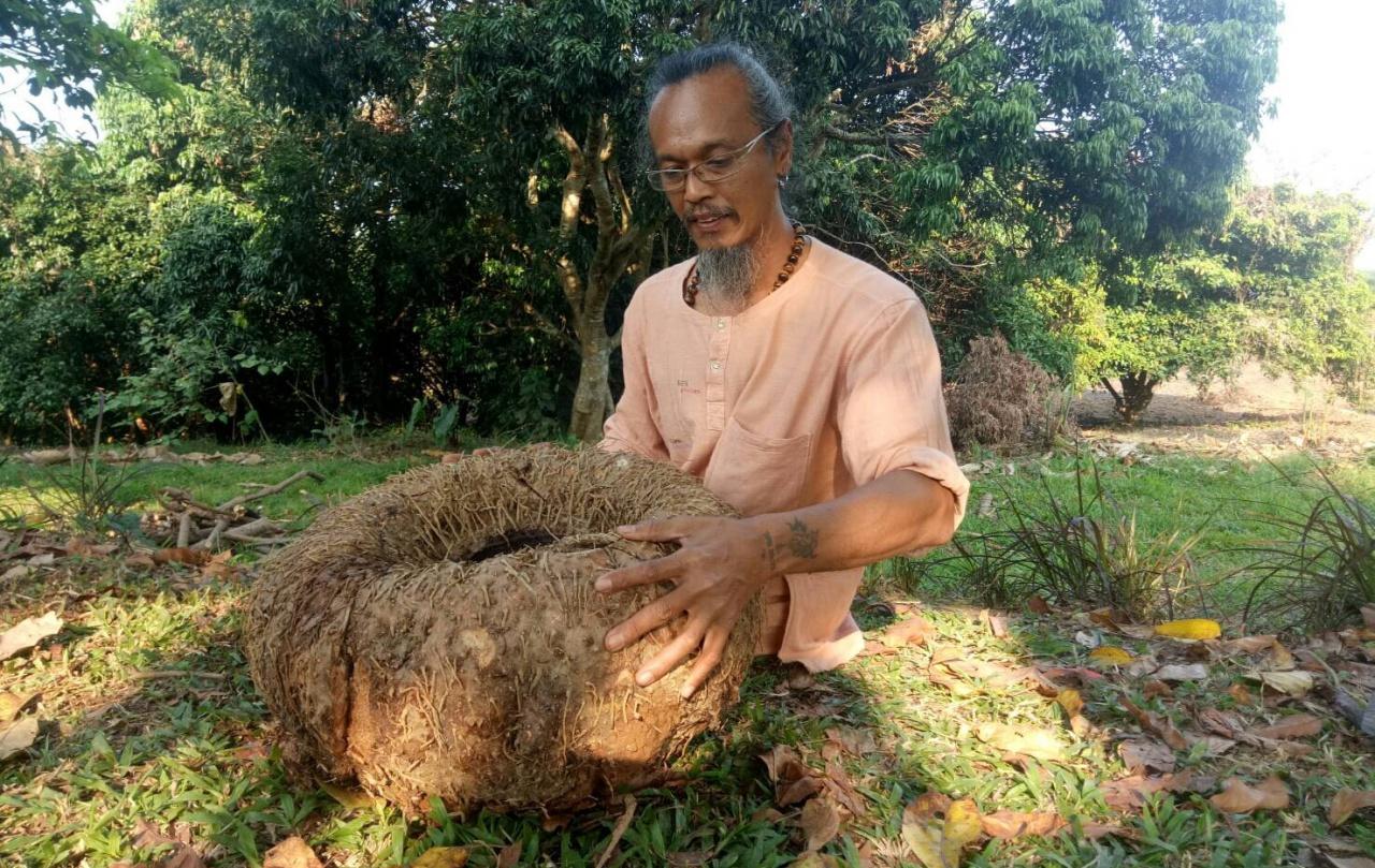 เกษตรกรเจ้าของสวนพอเพียง วังน้ำเขียว โคราช โชว์หัวบุกยักษ์ ที่ขุดพบ หนักกว่า 30 กก.ขนาดเท่ายางล้อรถยนต์ ใหญ่ที่สุดที่เคยเจอในพื้นที่ เผยสรรพคุณช่วยดูดซึมไขมัน ลดคอเลสเตอรอล ใช้เป็นอาหารเสริมลดความอ้วน...