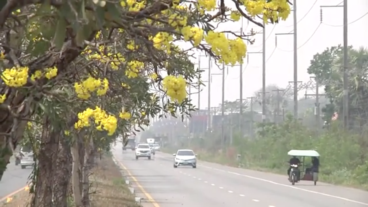 ดอกเหลืองปรีดียาธร ออกดอกบานสะพรั่ง รับฤดูร้อนตลอดเส้นทางมุ่งหน้าสู่จังหวัดขอนแก่น คาบเกี่ยว 2 อำเภอ ระยะทางกว่า 10กม. สร้างความประทับใจ ผู้สัญจรไป-มา
