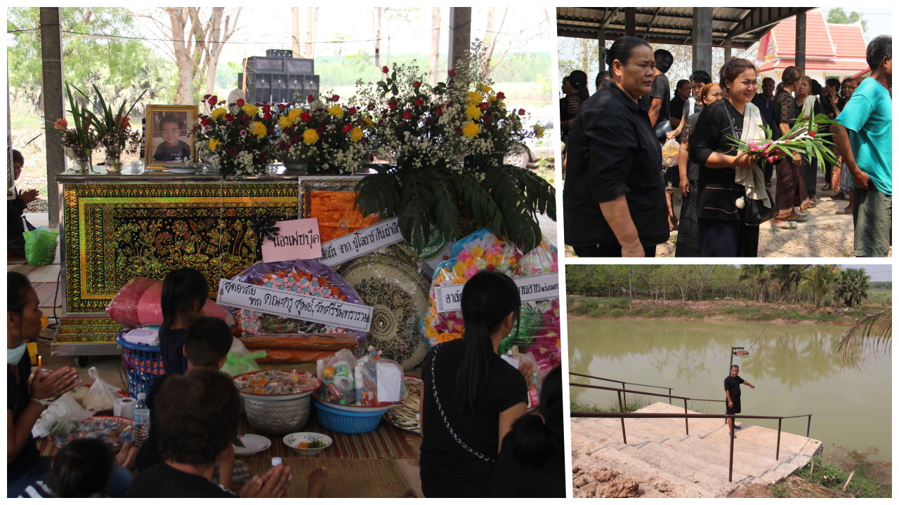 น.ส.ยุวธิดา บัวระคร อายุ 21 ปี แม่น้องเฟซบุ๊ก เปิดเผยว่า เสียใจที่เกิดเหตุจนต้องเสียลูกชายไป ตนมีลูก 2 คน น้องเฟซบุ๊กเป็นลูกคนเล็ก ตอนเกิดเหตุตนออกไปช่วยงานบุญในหมู่บ้าน โดยให้คุณตาไปรับน้องเฟซบุ๊กที่ศูนย์เด็กเล็กกลับมาบ้าน และอาบน้ำให้ จากนั้นน้องเฟซบุ๊กบอกกับตาว่าจะออกไปหาแม่ที่บ้านงานบุญ ตนก็รอลูกไม่เห็นมาหา จนประมาณ 5 โมงเย็น ยายน้องเฟซบุ๊กได้ขี่รถจักรยานยนต์มาบอกตนว่า น้องเฟซบุ๊กจมน้ำในสระน้ำภายในวัด ตนจึงรีบออกไป พบว่าเขานำร่างลูกขึ้นมาจากสระน้ำแล้ว จึงรีบนำส่งโรงพยาบาลทั้ง 3 คน แต่ไม่ทัน เพราะลูกของตน และเด็กอีก 2 คน เสียชีวิตนานแล้ว