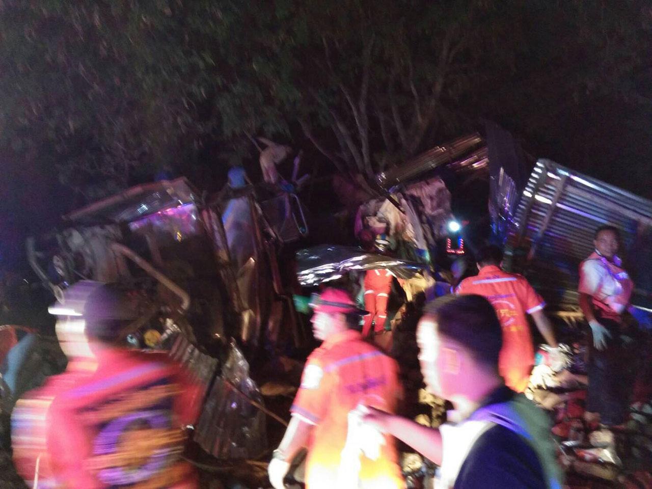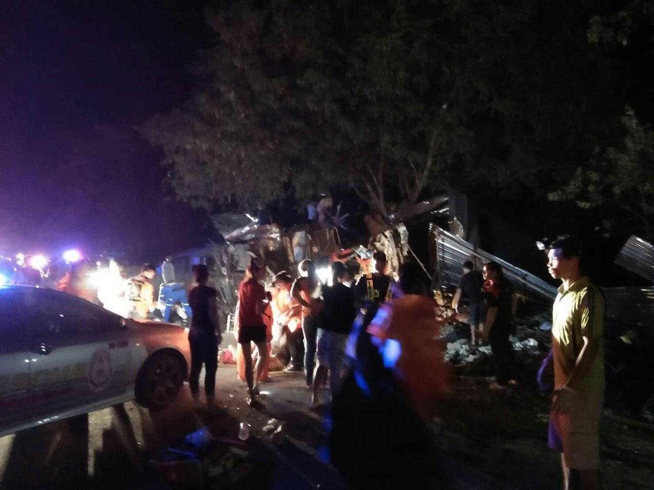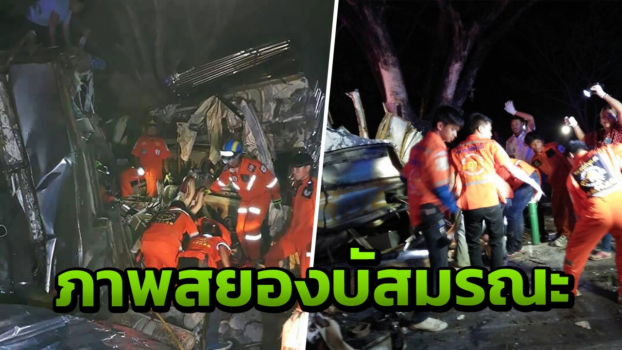 เจ้าหน้าที่เตรียมให้ญาติเข้ารับศพเหยื่อรถทัวร์กลับจากเที่ยวคว่ำที่ อ.วังน้ำเขียว กลับไปทำพิธีบำเพ็ญกุศล ส่วนสภาพรถทัวร์หลังเกิดอุบัติเหตุนั้น...