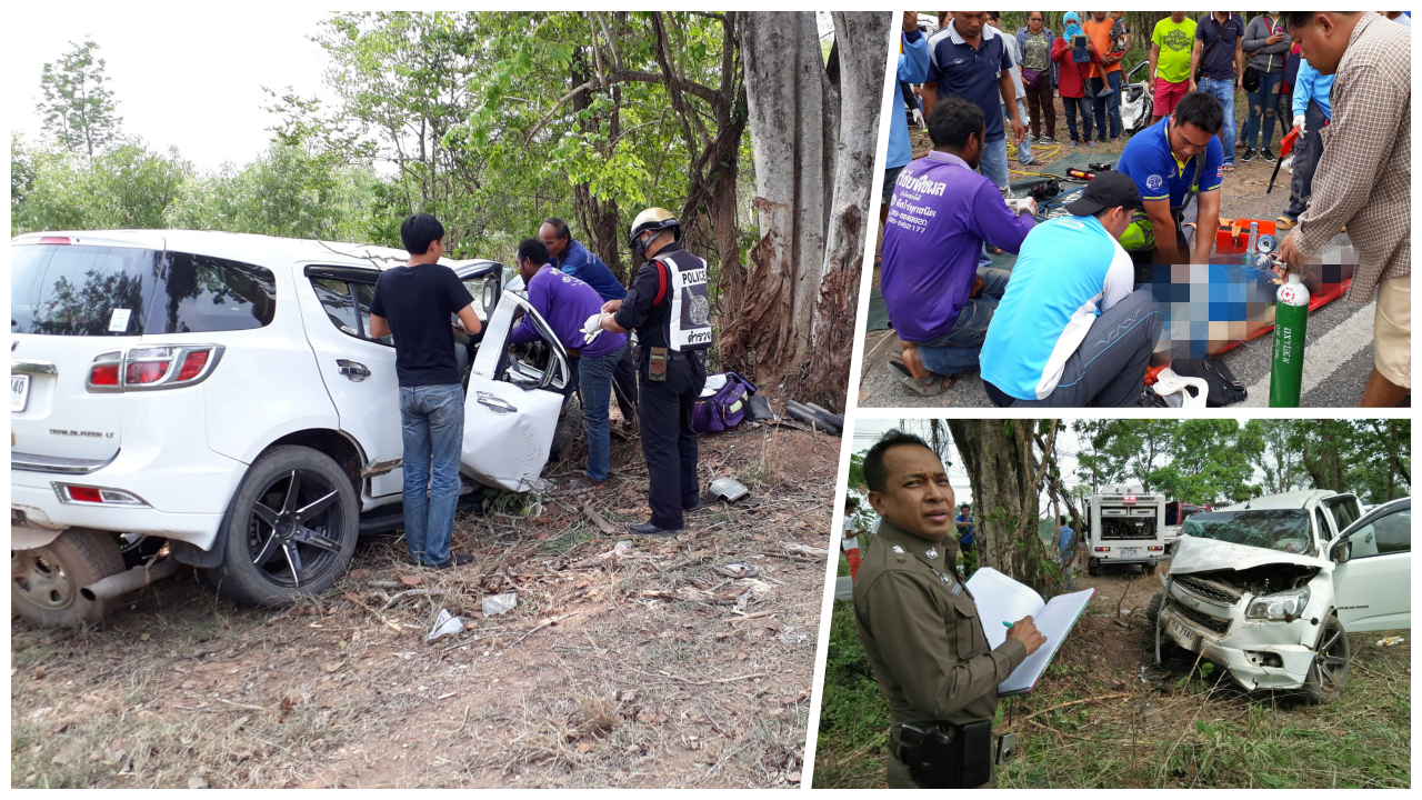 ช่วยไม่ไหว สาวใหญ่ชาวโคราช ควบเชฟโรเลตมาคนเดียว ลงข้างทางชนต้นไม้ใหญ่ ริมถนน อ.ด่านขุนทด บาดเจ็บสาหัสก่อนเสียชีวิต คาดหลับใน