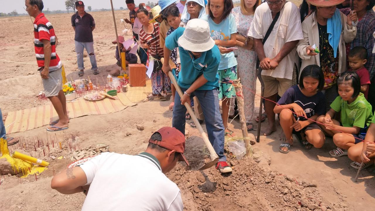 ส่วน นางสาวสุนีย์ ตุใยรัมย์ อายุ 56 ปี พี่สาวนายอุดมเจ้าของที่นา เล่าว่า เมื่อปีที่ผ่านพ่อนายหลง ตุใยรัมย์ พ่อของตนได้แบ่งที่นาให้ลูกคนละ 5 ไร่ พื้นที่ส่วนของน้องชายขุดพบโครงกระดูกคนโบราณ ตนเชื่อว่ามีสิ่งศักดิ์สิทธิ์เจ้าที่เจ้าทางสิงสถิต ณ ที่แห่งนี้ มีพี่น้องทยอยมาดูวันละหลายพันคน ในจำนวนนี้ต่างซื้อสลากกินแบ่งรัฐบาลติดไม้ติดมือกันไปแทบทุกคนรวมทั้งตนด้วย มีบางคนอธิษฐานไว้ว่า หากถูกลอตเตอรี่จะหาหมอลำซิ่งมาแก้บนที่ที่นาแห่งนี้.