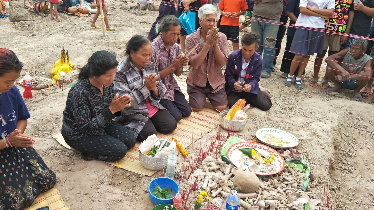 นายสุขี กล่าวต่อว่า วันนี้มีนางทองมา ไม่ทราบนามสกุล อายุ 60 ปี หมอธรรมที่อำเภอลำทะเมนชัย จ.บุรีรัมย์ โด่งดังด้านเข้าทรงประจำจังหวัดบุรีรัมย์ หลังทราบข่าวก็ได้เดินทางมายังพื้นที่พบโครงกระดูก เมื่อเข้าทรงทราบว่ามีคนโบราณ (มนุษย์แปดศอก) กลุ่มหนึ่งจำนวน 165 คนได้พากันเดินทางมาทำกินที่ดังกล่าว ครั้นเจอกับโรคร้ายทำให้ญาติเสียชีวิต จึงพากันฝังไว้ก่อนจะอพยพหนีไปหาที่ทำกินใหม่ หลังจากนั้นคอหวยวิ่งพล่านหลังทราบหมอธรรมให้เลขเด็ด 814 และ 25