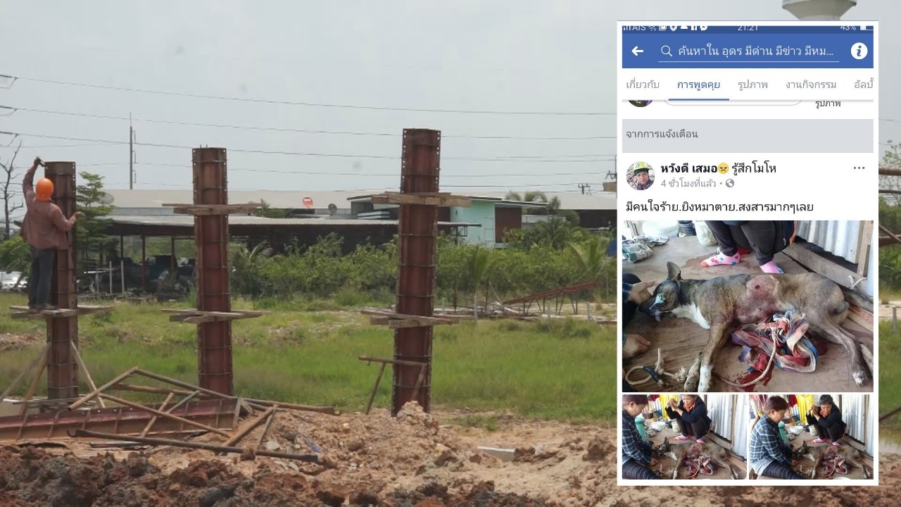 ผู้สื่อข่าวรายงานจาก จ.อุดรธานี ว่ามีผู้ใช้เฟซบุ๊กชื่อ “หวังดี เสมอ” โพสต์ภาพลงในเพจ “อุดรมีข่าว มีด่าน มีหมอลำ งานบุญ มีเหตุการณ์ต่าง ๆ บอกด้วย” เป็นภาพของสุนัขไทยพันธุ์ทาง ที่ตายจากการถูกยิงด้วยอาวุธปืน ไม่ทราบชนิดและขนาด ที่บริเวณกลางลำตัวด้านซ้าย ที่มีรอยโกนขนเพื่อเปิดดูบาดแผล โดยมีผู้หญิงที่คาดว่าจะเป็นเจ้าของสุนัข นั่งร้องไห้ดูร่างของสุนัขตัวนี้ และที่ปากของสุนัขคาบแบงก์ 20 ไว้ เหมือนทำพิธีให้กับสุนัข และระบุข้อความว่า “มีคนใจร้าย ยิงหมาตาย สงสารมาก ๆ เลย” โดยมีผู้เข้ามาแสดงความคิดเห็นต่างๆ นานา ที่ส่วนใหญ่แช่งให้ผู้ที่กระทำกับสุนัขตัวนี้ ต้องรับกรรมที่ก่อไว้