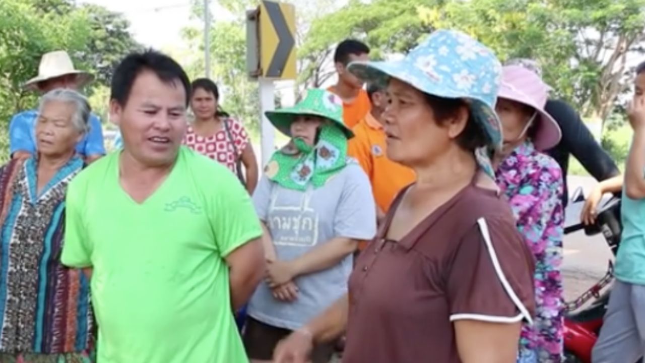 ทางด้าน นายชาตรี ทองประทุม อายุ 40 ปี (เสื้อน้ำเงิน) ชาวบ้านบึงอีเฒ่าอีกราย กล่าวว่า ปัญหาน้ำท่วม ปัญหาความแห้งแล้งในหมู่บ้านของตนเป็นมานานแล้ว แต่หน่วยงานราชการไม่เคยแก้ปัญหาได้ พืชผลทางการเกษตรที่ปลูกไว้รวมทั้งข้าวในนาเมื่อปีที่ผ่านมาเสียหายหมดจากน้ำท่วม แต่ขณะนี้ชาวบ้านกลับขาดแคลนน้ำมาทำนา ตนจึงอยากให้หน่วยงานที่เกี่ยวข้องลงมาดูแลให้ความช่วยเหลือในการปล่อยน้ำส่งมาตามคลองส่งน้ำชลประทาน