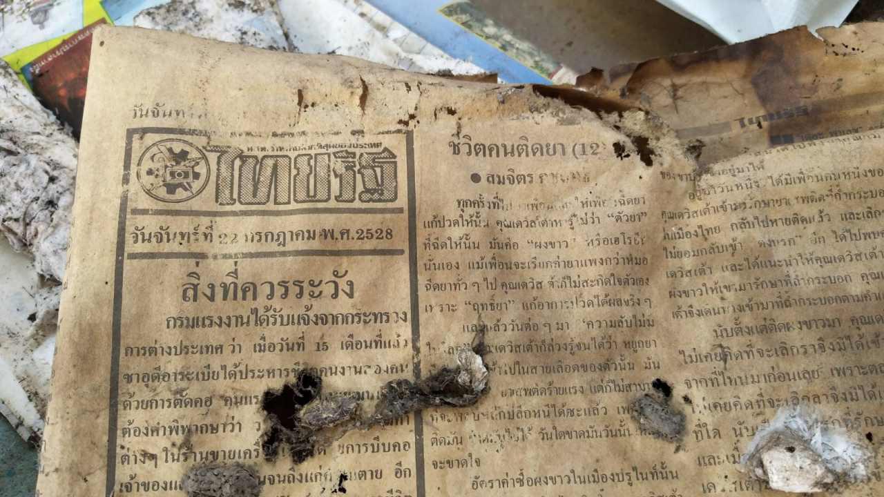 นอกจากนี้ที่ฝาผนังบ้าน ยังพบว่ามีการเอาหนังสือพิมพ์ไทยรัฐ พิมพ์ตั้งแต่ปี พ.ศ.2520-2528 มาติดตามฝาผนังอีกด้วย บ่งบอกว่าอดีตครูเมฆได้ติดตามหนังสือพิมพ์ไทยรัฐมาอย่างยาวนานกว่า 40 ปี หรือมากกว่านั้น