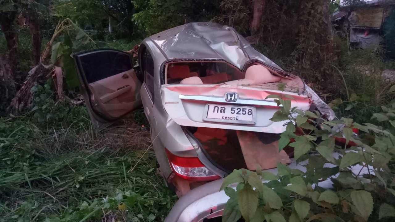 ห่างไปเล็กน้อยในป่าข้างถนนฝั่งเดียวกันพบรถเก๋งฮอนด้า ซิตี้ สีบรอนซ์เงิน หมายเลขทะเบียน กล 5258 อุดรธานี สภาพพังยับเยิน ภายในพบขวดเหล้าวางอยู่ที่พักเท้าข้างคนขับ 1 แบน มี นายสุวรรณ ผดุงเวียง อายุ 47 ปี อยู่บ้านเลขที่ 192 หมู่ 3 ต.หายโศก อ.บ้านผือ จ.อุดรธานี คนขับรถเก๋ง มีอาการตกใจและให้การวกไปวนมาคล้ายคนเมา
