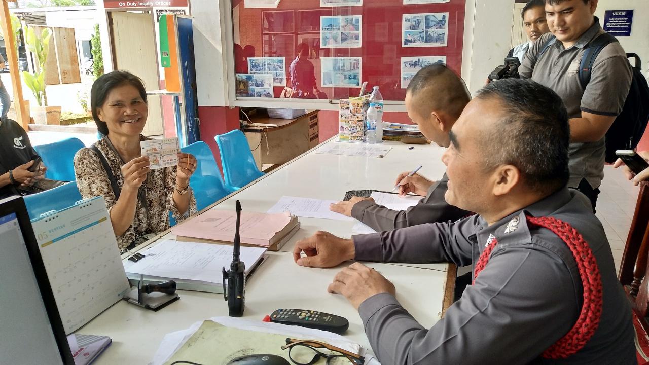 เมื่อเวลา 09.00 น. วันที่ 17 พ.ค.61 ที่ สภ.ด่านซ้าย จ.เลย มี นางบัวเรียน ทับปีแสน อายุ 55 ปี อยู่บ้านเลขที่ 168 บ้านห้วยหมุ่น ต.กกสะทอน อ.ด่านซ้าย จ.เลย และนางสาวอรพิน ราชอาจ อายุ 37 ปี อยู่บ้านเลขที่ 95 บ้านกกจาน ต.กกสะทอน อ.ด่านซ้าย จ.เลย ครูศูนย์พัฒนาเด็กเล็ก ต.กกสะทอน พร้อมด้วยญาติ เดินทางเข้าแจ้งความกับ พ.ต.ท.ธาตรี เสนาผดุง สว.(สอบสวน) สภ.ด่านซ้าย ว่าตนเองถูกรางวัลที่ 1 งวดประจำวันที่ 16 พ.ค.61 คนละ 1 ใบ คนละ 6 ล้านบาท เพื่อเป็นหลักฐาน