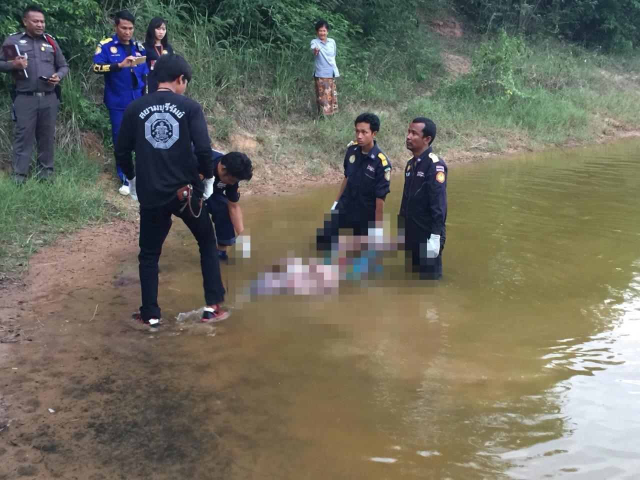 ต่อมาเวลา 17.30 น. นายศราวุธ เปียน่วม อายุ 26 ปี อยู่บ้านเลขที่ 4 ถ.งามกมลพัฒนา อ.นางรอง จ.บุรีรัมย์ เผยว่า ตนจะมาหว่านแหจับปลา มองไปในน้ำเห็นศพลอยคว่ำหน้าจมน้ำ จึงรีบมาตามชาวบ้านไปดู และบอกต่อกันให้ไปบอก นางสำรวย เพราะรู้ว่าตามหาลูกชายตั้งแต่เช้า และมีกระท่อมอยู่ริมสระน้ำ เมื่อนางสำรวยและชาวบ้านเห็นศพที่ จนท.กู้ภัยนำขึ้นมาก็รู้ว่าเป็นลูกตน โดยสันนิษฐานว่าน่าจะเมาแล้วลงไปอาบน้ำในสระ ทำให้จมน้ำเสียชีวิต ส่วนญาติไม่ติดใจเหตุการเสียชีวิตและนำศพไปบำเพ็ญกุศลต่อไป.