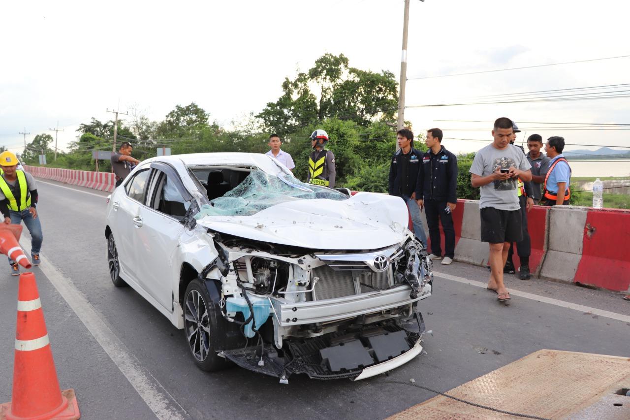ที่เกิดเหตุพบ รถเครนโม่ปูน สีฟ้า-ขาว ยี่ห้อฮีโน่ ทะเบียน 63-4034 กทม.ถอยหลังมาชนเสาไฟฟ้า ที่ตั้งอยู่ภายในเขตก่อสร้างมอเตอร์เวย์ ล้มลงมา ทำให้สายไฟและแท่งปูนที่รองรับถ้วยไฟฟ้ากระเด็นลงมาตกกลางถนนมิตรภาพ ที่รถสัญจรผ่านไปมา พอดีกับที่มี รถเก๋งโตโยต้า โคโรลล่า อัลติส สีขาว ทะเบียน 7กฐ 6065 กทม. ขับผ่านมาพอดี ทำให้บริเวณด้านหน้า ฝากระโปรง หัวรถ พังยุบ กระจกบังลมด้านหน้าแตก มีผู้โดยสายเป็นหญิง มารดาและลูก ที่นั่งด้านหลังเบาะโดยสาร ได้รับบาดเจ็บเล็กน้อยจากเศษกระจกบาด 2 ราย นำส่ง รพ. กรุงเทพปากช่อง ส่วนผู้ขับขี่เป็นนายทหาร ไม่ได้รับบาดเจ็บแต่อย่างใด.