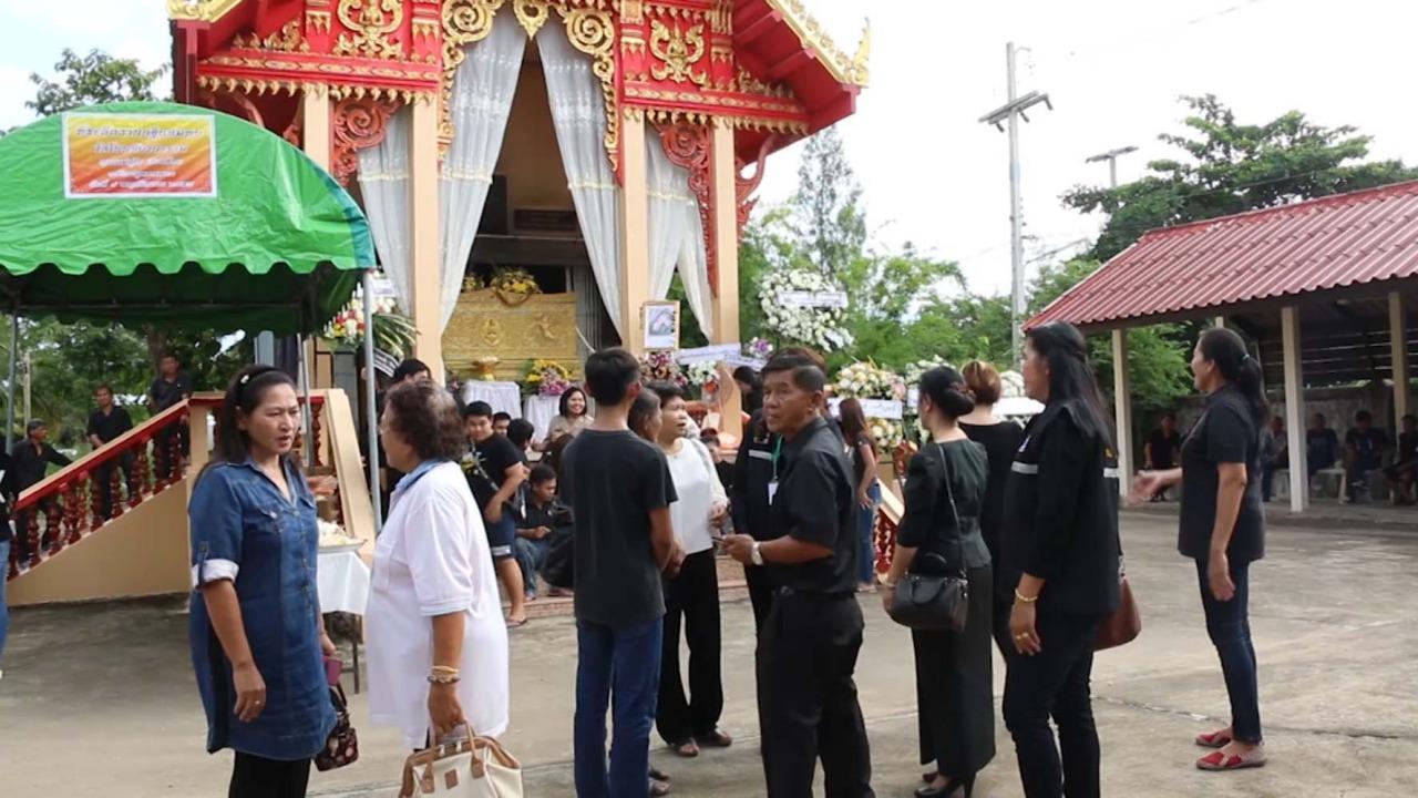 บรรยากาศพิธีฌาปนกิจ นางสาวธัญญา กองพีละ หรือ น้องเปิ้ล สาวไทยที่ถูกหลอกไปทำงาน ตปท.แล้วไปโผล่ที่มาเลเซีย ก่อนกลายเป็นศพผูกคอตาย โดยญาติร่วมไว้อาลัยด้วยความโศกเศร้า...