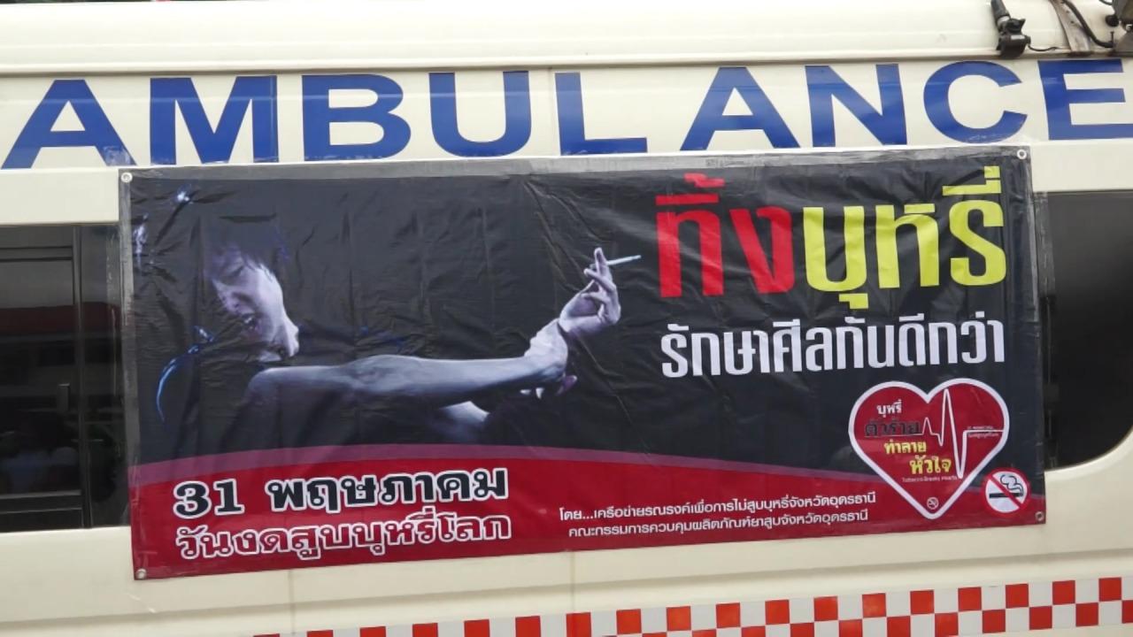 เมื่อวันที่ 30 พ.ค. ที่ห้องประชุมที่ว่าการอำเภอเมือง จ.อุดรธานี นายวัฒนา พุฒิชาติ ผู้ว่าราชการ จ.อุดรธานี เป็นประธานเปิดงานวันรณรงค์งดสูบบุหรี่โลก และปล่อยขบวนรถแห่รณรงค์งดสูบบุหรี่ โดยมีนายแพทย์ทวีรัตน์ ศรีกุลวงศ์ รองนายแพทย์สาธารณสุข จ.อุดรธานี นายวัชรินทร์ สุตลาวดี นายอำเภอเมือง จ.อุดรธานี พร้อมกับหน่วยงานราชการที่เกี่ยวข้อง อสม. ครู นักเรียน และประชาชนเข้าร่วมกิจกรรม เพื่อเดินหน้าสร้างแกนนำในกลุ่มเยาวชน และประชาชนขยายผลเข้าไปยังโรงเรียนและชุมชนให้ปลอดบุหรี่