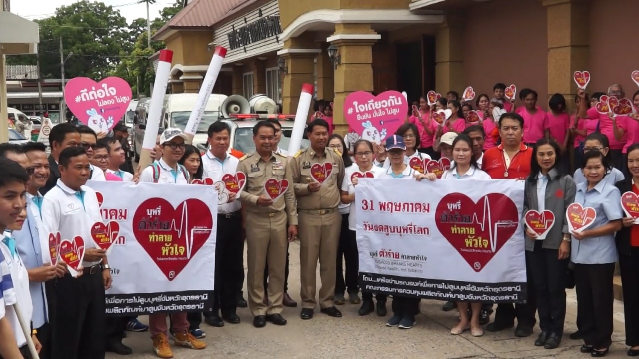 นายแพทย์ทวีรัตน์ ศรีกุลวงศ์ รอง สสจ.อุดรธานี กล่าวว่า วันที่ 31 พฤษภาคมของทุกปีเป็นวันงดสูบบุหรี่โลก โดยองค์การอนามัยโลกได้กำหนดคำขวัญในปี 2561 คือ “Tobacco and Heart Disease” ภาษาไทยคือ “รักษ์หัวใจ ห่างไกลบุหรี่” เป็นการป้องกันควบคุมการเสพผลิตภัณฑ์ยาสูบ ช่วยเหลือผู้ที่เสพติดให้เลิกสูบบุหรี่ และปกป้องประชาชนจากการได้รับสารพิษจากควันบุหรี่ และเป็นการปกป้องดูแลหัวใจและหลอดเลือด เพราะว่าการสูบบุหรี่และการได้รับควันบุหรี่มือสอง เป็นสาเหตุของการเสียชีวิตร้อยละ 12 จากโรคหัวใจทั้งหมด และเป็นสาเหตุสำคัญลำดับที่ 2 ของการเสียชีวิตจากโรคหัวใจและหลอดเลือด รองจากโรคความดันโลหิตสูง แต่ละปีพบผู้เสียชีวิตจากบุหรี่มากกว่า 7 ล้านคน