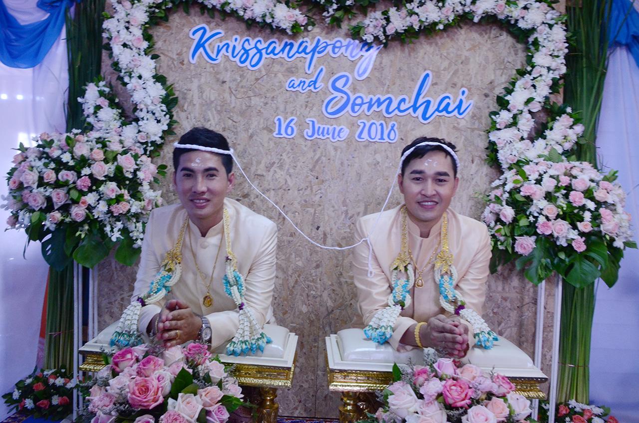 เมื่อเช้าวันที่ 16 มิ.ย.61 ที่บ้านเลขที่ 112 ต.หนองบัวตะเกียด อ.ด่านขุนทด จ.นครราชสีมา ซึ่งเป็นบ้านของ นายฉอ้อย และ นางสมัย บมขุนทด ได้มีการจัดพิธีมงคลสมรส ระหว่าง นายกฤษณพงษ์ บมขุนทด หรือ ปาล์ม เจ้าสาววัย 34 ปี กับนายสมชาย คำเคน หรือ บอล เจ้าบ่าว วัย 26 ปี โดยมีการจัดพิธีมงคลสมรสตามประเพณีเหมือนงานแต่งชายหญิงทุกประการ เพียงแต่คู่บ่าวสาววันนี้เป็นเพศชายทั้งคู่ ท่ามกลางความยินดีของบรรดาญาติมิตรและแขกเหรื่อกว่า 500 คน