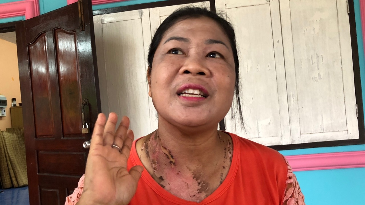 นางพรนิภา ที่มีรอยถูกไหม้บริเวณลำคอ เป็นแผลถลอกรอบคอ เล่าให้ฟังว่า เมื่อวันที่ 12 ก.ค.ที่ผ่านมา ช่วงเวลาประมาณ 14.00 น. ตนกับ นางจันทร์เทียม เสนามงคล อายุ 60 ปี น้าสาว นั่งคุมงานคนงานก่อสร้างบ้านอยู่เก้าอี้ม้าหินอ่อนใต้ต้นไม้หลังบ้าน และกำลังนับเงินเตรียมจะจ่ายค่าปูนให้กับคนงานชายคนหนึ่งซึ่งยืนอยู่ใกล้กับรถผสมปูน ห่างจากที่ตนเองกับน้าสาวนั่งอยู่ประมาณ 4 เมตร ขณะนั้นมีฝนตกปรอย ๆ ไม่มีลม ไม่มีฟ้าร้อง จู่ ๆ ตนก็หมดสติ มารู้ตัวอีกทีก็อยู่บนรถ