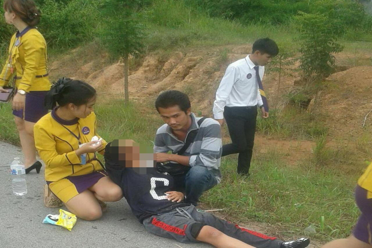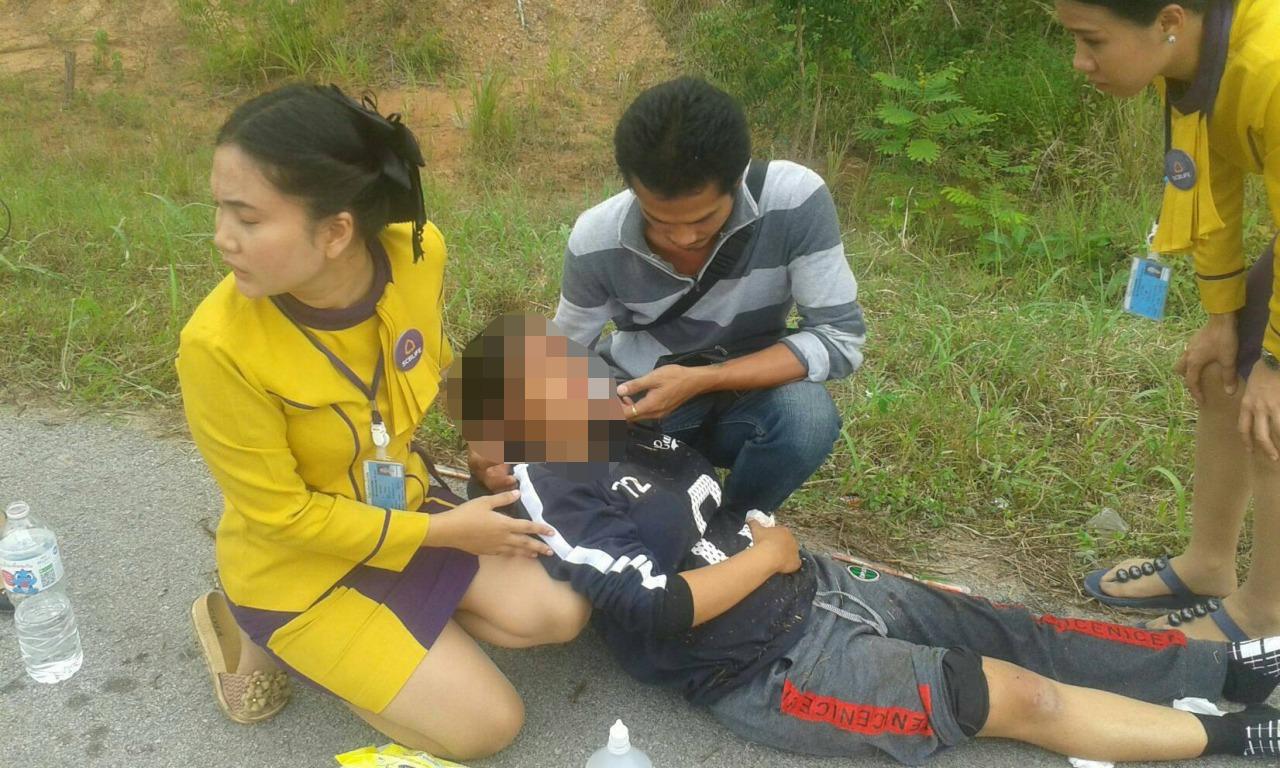 เมื่อมาถึงที่เกิดเหตุพบ น.ส.ปวีณา ป้อมค่าย อายุ 29 ปี ชาวบ้าน หมู่ 1 ต.ห้วยส้ม อ.ภูกระดึง จ.เลย ตั้งครรภ์ได้ 2-3 เดือน ขี่ จยย.ฮอนด้าสกู๊ปปี้ สีชมพูดำ ทะเบียน ขทต 533 สระบุรี ถูกสุนัขวิ่งตัดหน้ารถจนพลิกคว่ำได้รับบาดเจ็บ ได้ลงมาช่วยเหลือปฐมพยาบาล โดยไม่กลัวว่าเสื้อผ้าที่สวมอยู่และร่างกายจะเปื้อนเลือด จนกระทั่งกู้ภัยภูกระดึงพิทักษ์ชีพ มาถึงที่เกิดเหตุและรับช่วงนำคนเจ็บส่ง รพ.ภูกระดึง จากนั้นสาวๆ พนักงานไทยพาณิชย์ประกันชีวิตได้ขึ้นรถเดินทางกลับทันที โดยภายหลังทราบว่าพวกเธอทำงานอยู่ที่ จ.อุดรธานี.