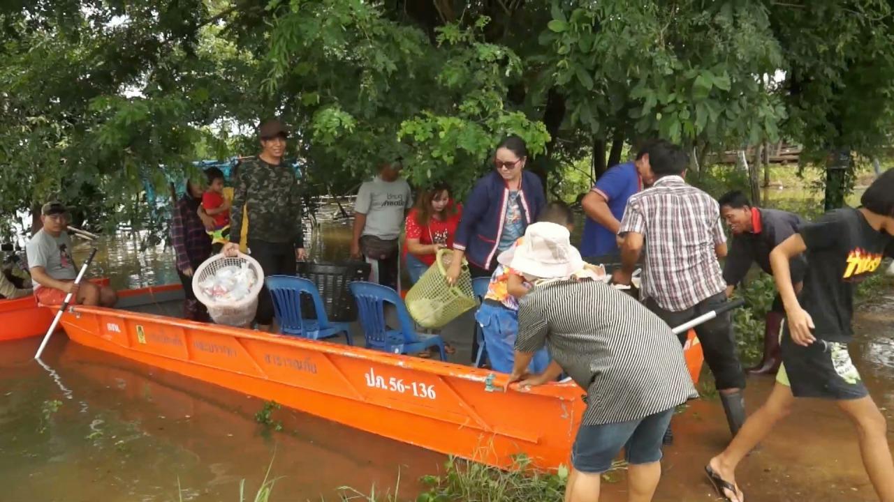 ผู้สื่อข่าวรายงานความคืบหน้าสถานการณ์อุทกภัยในพื้นที่จังหวัดสกลนคร วันที่ 30 กรกฎาคม 2561บรรดาจิตอาสาทยอยนำอาหารและน้ำดื่มเข้าไปส่งมอบให้กับชาวบ้านที่ประสบอุทกภัยที่บ้านโพนแคใหญ่และบ้านปู่พื้ม ซึ่งเป็นสองหมู่บ้านที่ได้รับผลกระทบจากการที่น้ำจากหนองหารเกินความจุ สมทบกับการที่มีฝนตกต่อเนื่องตลอดหลายวันที่ผ่านมา ทำให้ทั้งสองหมู่บ้านถูกล้อมรอบไปด้วยผืนน้ำ ถนนเส้นทางเข้าหมู่บ้านถูกน้ำท่วมสูงจนรถเล็กไม่สามารถผ่านเข้าไปได้ สร้างความลำบากในการสัญจรเข้าออก โดยชาวบ้านส่วนใหญ่ยังคงอาศัยอยู่บนชั้นสองของตัวบ้านที่น้ำยังไม่ท่วมถึง แต่ก็ต้องประสบกับปัญหาขาดแคลนอาหารและน้ำดื่ม เนื่องจากไม่สามารถประกอบอาหารได้ตามปกติ