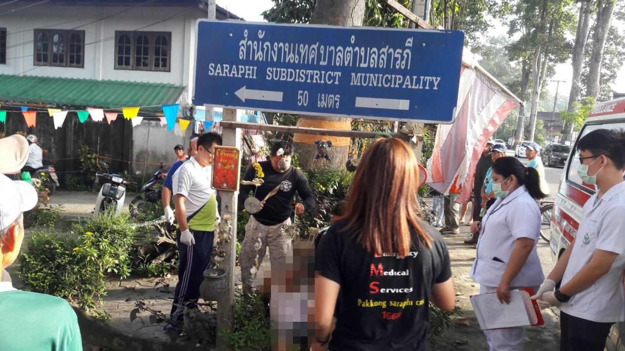 ลุงวัย 60 ปี ที่เชียงใหม่ เขียนจม.ใส่กระเป๋าเสื้อ ขออโหสิกรรม ก่อนมาผูกคอตัวเองกับเหล็กยึดป้ายบอกทางไปเทศบาล กลายเป็นศพอยู่ริมถนนสายต้นสายต้นยางนา อ.สารภี