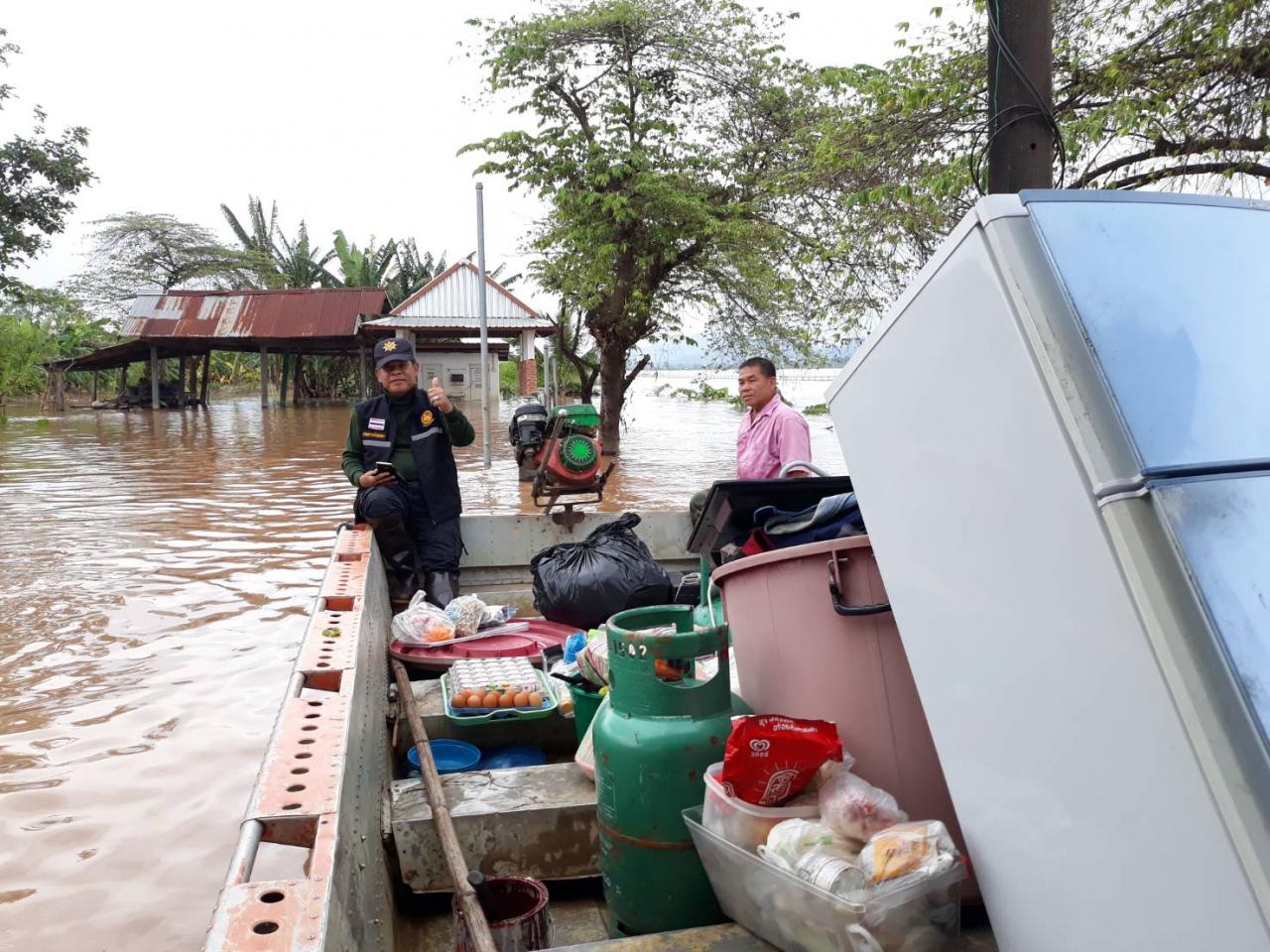 ส่วน จ.นครพนม นายสมบูรณ์ ชนะหาญ ปลัดอำเภอหัวหน้างานฝ่ายความมั่นคง อ.บ้านแพง ได้ประสานงานกับเจ้าหน้าที่จากหน่วยงานเกี่ยวข้อง นำเจ้าหน้าที่ฝ่ายปกครอง กำลัง อส. ลงพื้นที่ ตรวจสอบให้การช่วยเหลือ นำเรือท้องแบน ลงพื้นที่ ช่วยเหลือ ขนย้ายสิ่งของ ชาวบ้าน ที่ได้รับผลกระทบจากปัญหาน้ำโขงเอ่อล้นตลิ่ง เข้าท่วมบ้านเรือน ร้านค้า ร้านอาหาร ของ ชาวบ้าน ในเขตพื้นที่ อ.บ้านแพง เนื่องจากในช่วง 2-3 วันที่ผ่าน มาผลกระทบจากภาคเหนือมีฝนตกหนัก เกิดน้ำท่วม บวกกับอิทธิพลของ สปป.ลาว มีการระบายน้ำจากเขื่อนหลายแห่ง ทำให้ น้ำโขงมีปริมาณเพิ่มขึ้นรวดเร็ว วันละประมาณ 10-250 เซนติเมตร ล่าสุดมีระดับอยู่ที่ประมาณเกือบ 12 เมตร ทำให้บางจุดเกิดปัญหาน้ำโขงล้นตลิ่ง เข้าท่วมบ้านเรือน เพราะมีระดับน้ำสูงเกินเขื่อนป้องกันตลิ่ง โดยเฉพาะในพื้นที่ บ้านดอนแพง ต.บ้านแพง อ.บ้านแพง ได้รับผลกระทบหนักเป็นรอบที่ 2 หลังลดระดับได้ประมาณ 2-3 วัน สร้างความเดือดร้อนให้กับชาวบ้าน มากกว่า 30 หลังคาเรือน ต้องช่วยกันขนย้าย สิ่งของ ออกจากบ้านเรือน ป้องกันความเสียหาย