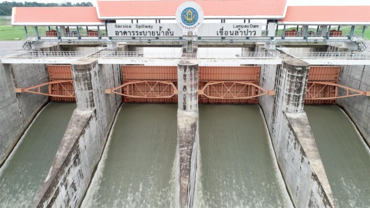 ขณะที่ จ.กาฬสินธุ์ พบว่าตลอดทั้งคืนในพื้นที่จังหวัดกาฬสินธุ์ได้มีฝนฟ้าคะนอง ฝนตกลงมาอย่างหนัก ทำให้มีน้ำไหลเข้าอ่างเก็บน้ำและตามลำน้ำสายต่างๆ เพิ่มขึ้น โดยจากการตรวจสอบปริมาณน้ำฝนที่เขื่อนลำปาว จ.กาฬสินธุ์วัดได้ 50 มม. ฝนที่ตกลงมาทำให้มีน้ำไหลเข้าเขื่อนลำปาว ประมาณ 23 ล้านลูกบาศก์เมตร โดยเขื่อนมีปริมาณน้ำกักเก็บอยู่ที่ 1,131 ล้านลูกบาศก์เมตร หรือร้อยละ 57 ของความจุอ่าง ทางเขื่อนยังคงระบายน้ำลงสู่ลำน้ำสายหลักวันละ 8 ล้านลูกบาศก์เมตร