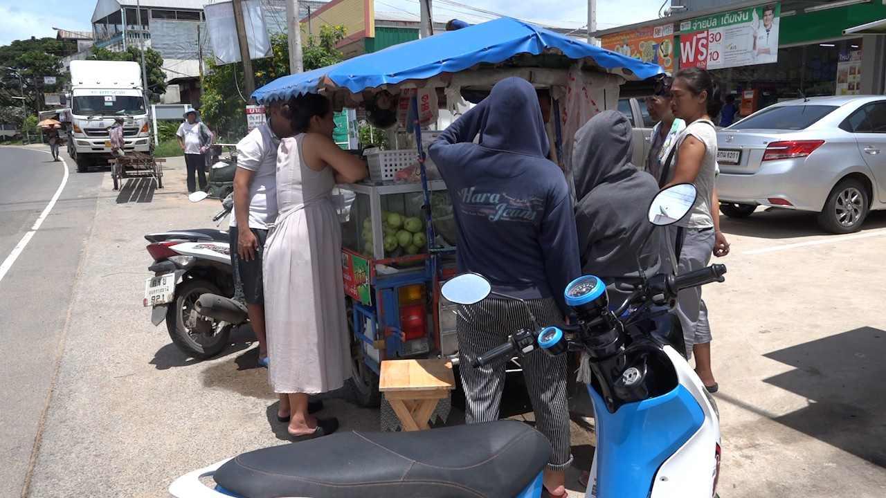 วันที่ 24 ส.ค.61 ผู้สื่อข่าวรายงานว่า ที่บริเวณริมถนน คลังอาวุธ ตำบลขามใหญ่ อำเภอเมือง จังหวัดอุบลราชธานี ได้มีร้านขายส้มตำและผลไม้สดเคลื่อนที่ ซึ่งเป็นลักษณะของรถจักรยานยนต์พ่วงข้าง มีลูกค้ายืนรอคิวกันเป็นจำนวนมาก