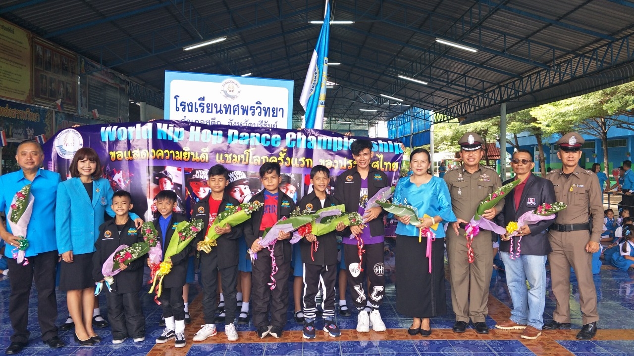 เมื่อวันที่ 27 ส.ค.2561 ผู้สื่อข่าวรายงานว่า ที่บริเวณหน้าเสาธงโรงเรียนทศพรวิทยา ต.นิคม อ.สตึก จ.บุรีรัมย์ นางสงกรานต์ พันธุ์พินิจ ผอ.โรงเรียนทศพรวิทยา กล่าวว่า วันนี้ทางโรงเรียน คณะครู ผู้ปกครอง จำนวน 700 คน ได้ร่วมจัดพิธีต้อนรับเด็กนักเรียนที่คว้ารางวัลชนะเลิศเต้นฮิปฮอปที่ประเทศสหรัฐฯ คือ เด็กชายพัชรพงษ์ ถวิลบุญ อายุ 10 ปี นักเรียนชั้น ป.5, เด็กชายภูบดินทร์ ไพเราะ อายุ 10 ปี นักเรียนชั้น ป.5, เด็กชายณัฐพงษ์ สุโทวา อายุ 9 ปี นักเรียนชั้น ป.4, เด็กชายณัฏฐชัย แจ่มแจ้ง อายุ 9 ปี นักเรียนชั้น ป.4 และเด็กชายสุรกานต์ เครือยศ อายุ 8 ปี นักเรียนชั้น ป.3 พร้อมครูนายอัสนี เกลื่อนกลาด หรือครูหนึ่ง เป็นผู้ฝึกสอน พร้อมมอบช่อดอกไม้ เสื้อสามารถ หลังเด็กนักเรียนกลุ่มดังกล่าวได้เดินทางออกรายการทีวีที่ กทม. เพิ่งมีโอกาสกลับโรงเรียนจึงจัดการต้อนรับขึ้น