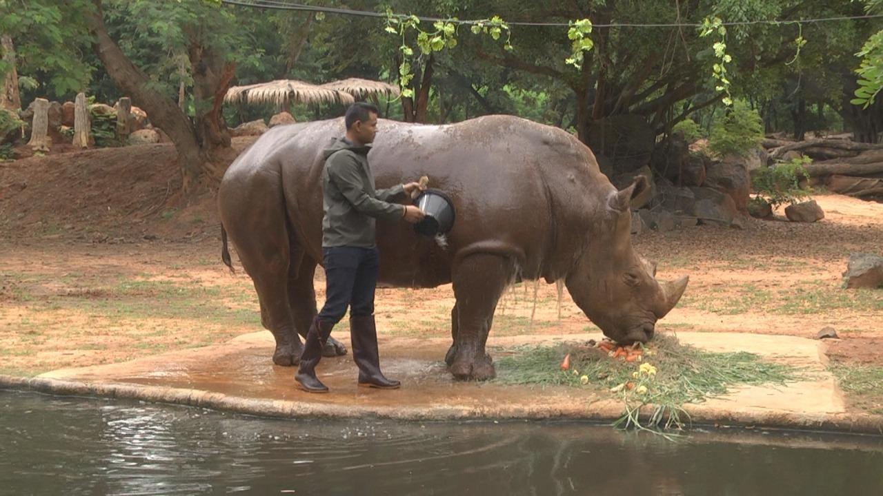 สวนสัตว์นครราชสีมา เปิดตัวสัตว์ป่าสมาชิกใหม่ คือ แรดขาวจำนวน 2 ตัว พร้อมทั้งโชว์อาบน้ำให้แรดขาว และเลี้ยงบุฟเฟต์ เนื่องในวันอนุรักษ์แรดโลก...