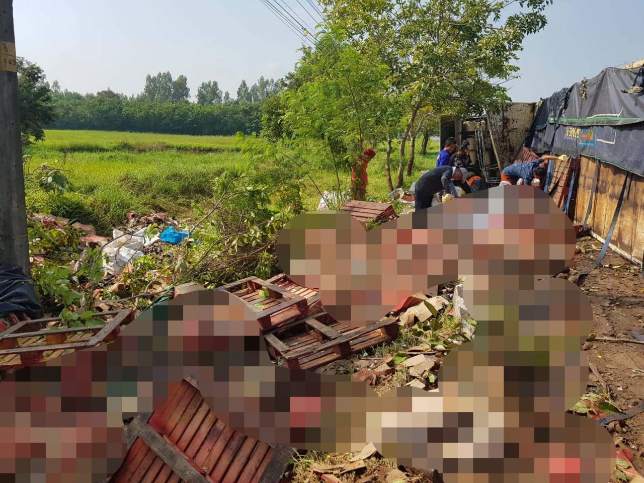 ในที่เกิดเหตุพบบรรทุกรถพ่วงทะเบียนหน้า 60-7740 กรุงเทพมหานคร พ่วงหลังทะเบียน 60-7741 กรุงเทพมหานคร บรรทุกเครื่องดื่มแอลกอฮอล์ชื่อดัง พลิกคว่ำตะแคงด้านซ้ายอยู่ข้างถนนมิตรภาพ ฝั่งขาออกจากตัวเมืองขอนแก่น หันหน้าเข้า อ.บ้านแฮด ทำให้ลังบรรจุเครื่องดื่มพร้อมพาเลท ตกกระจายเกลื่อนพื้น กลิ่นแอลกอฮอล์เหม็นคละคลุ้งไปทั่ว โดยมีคนงานเร่งเก็บขวดเครื่องดื่มที่ยังไม่แตกบรรจุใส่ถุงเอาไว้ และเจ้าหน้าที่ตำรวจจราจร สภ.บ้านแฮด คอยอำนวยความสะดวกทางด้านการจราจร เนื่องจากรถบรรทุกพ่วงขวางถนน 1 ช่องทางฝั่งขาออกจากตัวเมืองขอนแก่น ก่อนจะถึงอ.บ้านแฮด