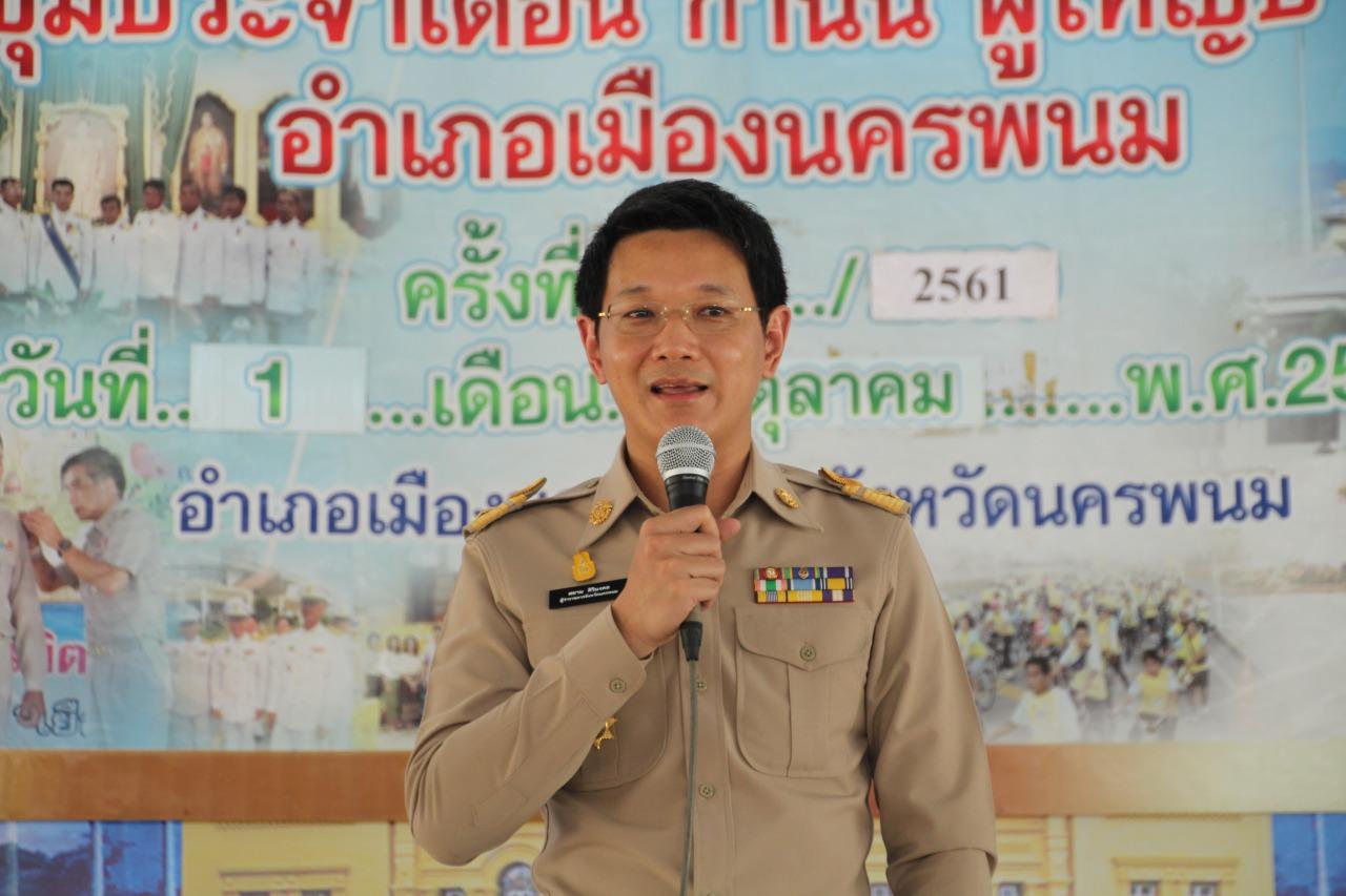 หลังเดินมาถึง จ.นครพนม ได้เดินทางไปกราบขอพรสิ่งศักดิ์สิทธิ์ตามสถานที่สำคัญต่างๆ อาทิ ศาลหลักเมือง พระบรมรูปรัชกาลที่ 5 ก่อนเดินทางไปนมัสการองค์พระธาตุพนม ที่วัดพระธาตุพนมวรมหาวิหาร อ.ธาตุพนม มี พระเทพวรมุนี เจ้าอาวาสวัด เจ้าคณะจังหวัดนครพนม นำถวายเครื่องสักการบูชา ห่มผ้าพระธาตุ พร้อมนำเข้าสักการะภายในองค์พระธาตุ เพื่อเป็นสิริมงคล จากนั้นได้ถือฤกษ์ทำงานวันแรก ลงพื้นที่พบปะผู้นำชุมชนท้องถิ่น ผู้บริหารท้องถิ่น ที่หอประชุมที่ว่าการอำเภอเมืองนครพนม เพื่อพบปะแนะนำตัว และทำความเข้าใจในการทำงาน เบื้องต้น ได้ขอฝากตัวเป็นลูกหลานทำงานรับใช้ชาวนครพนม และประกาศตัวว่าจะขออยู่นครพนม ครบวาระ 4 ปี นอกจากนี้ ยังได้เน้นย้ำทำความเข้าใจกับผู้บริหารท้องถิ่น ผู้นำชุมชนท้องถิ่น รวมถึงข้าราชการ เจ้าหน้าที่รัฐ ให้ร่วมแรงร่วมใจกันทำงานพัฒนาบ้านเมืองตามนโยบายรัฐบาล และให้วางตัวเป็นกลางในการเลือกตั้งที่จะมาถึง เพื่อให้การเลือกตั้งบริสุทธิ์ยุติธรรม ได้ประชาธิปไตยที่สมบูรณ์ ที่สำคัญยังได้กล่าวถึงแนวทางการทำงานว่า จะเน้นการลงพื้นที่พบปะชาวบ้านเป็นหลัก ประชาชนที่เดือดร้อนสามารถเข้าพบ และขอความช่วยเหลือได้ตลอด