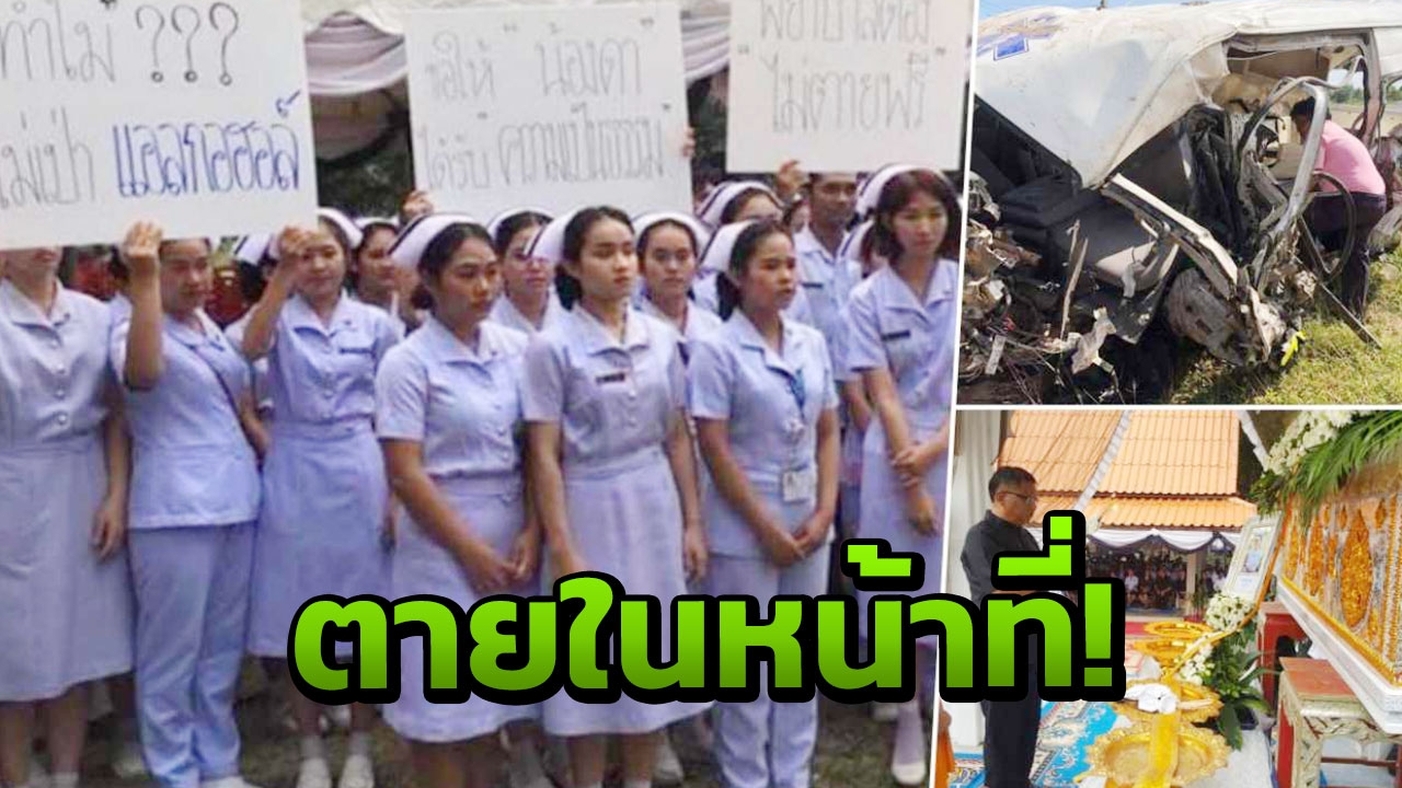 พยาบาลบุรีรัมย์เรียกร้อง การเยียวยากรณี "ตายในหน้าที่" ขอปูนบำเหน็จ-มีเงินทดแทน-ธงชาติคลุมร่าง พร้อมเหรียญกล้าหาญ หลังพยาบาลสาววัย 25 ปี ถูกร.ต.อ.เมาซิ่งปิกอัพชนตายคารถฉุกเฉิน