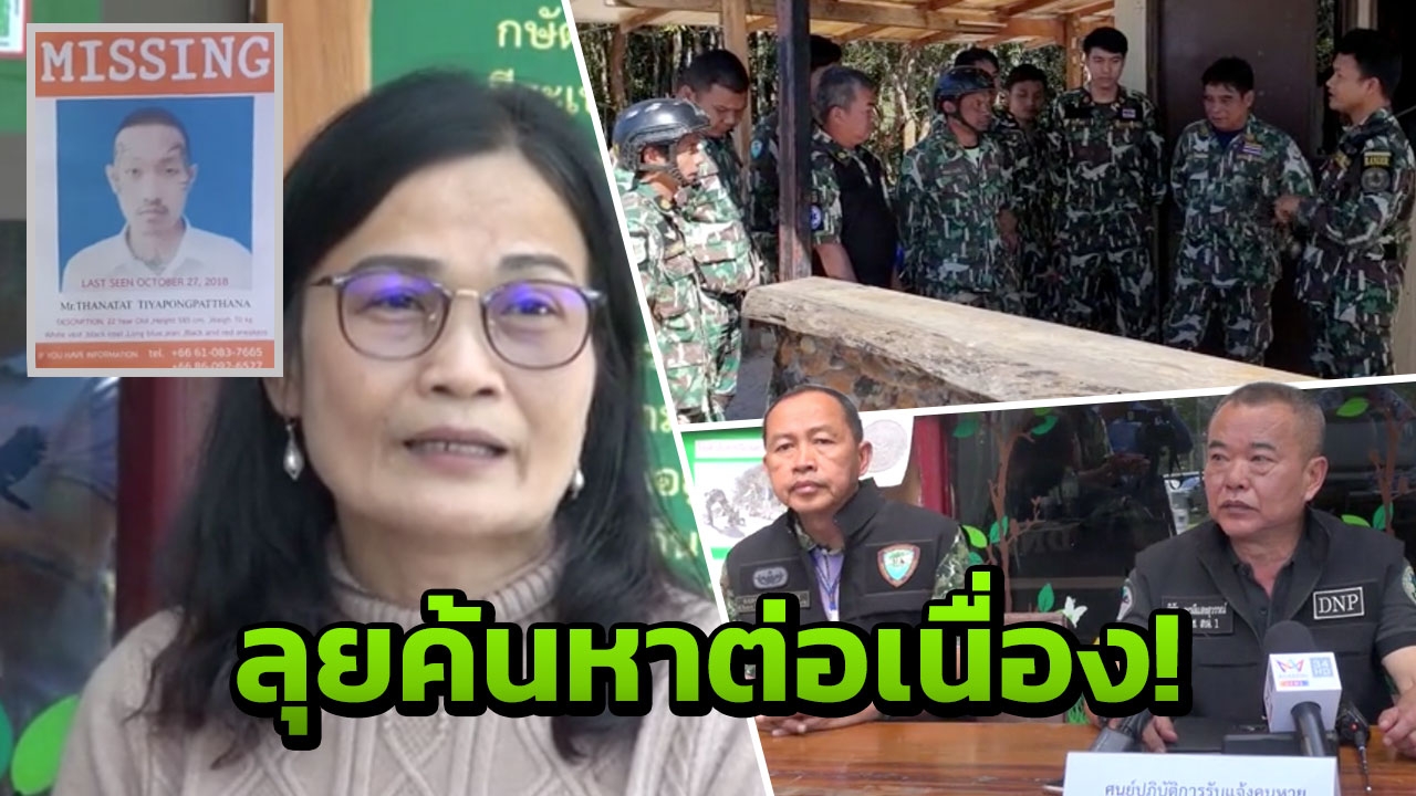 "ส่วนสาเหตุที่ตนยังไม่รีบแจ้งความคนหาย ภายใน 24 ชั่วโมงนั้น เนื่องจากที่ผ่านมาลูกชายจะออกไปเที่ยว 2-3 วัน ก็จะกลับบ้าน แต่ครั้งนี้ไม่เป็นแบบนั้น ตนจึงได้เข้าแจ้งความเมื่อวันจันทร์(29 พ.ย.)ที่ผ่านมา ซึ่งผ่านระยะเวลามา 3 วัน ที่ลูกชายไม่ติดต่อกลับมาหาตน โดยตนเชื่อว่านายธนทัตน่าจะหลงป่าอยู่ในขณะนี้"