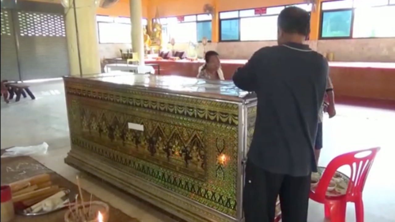 ส่วนคดีก็ให้ทางเจ้าหน้าที่ดำเนินการไป หลังเสร็จงานศพก็จะขึ้นไปติดตามอีกทีหลัง ขณะที่เรื่องการนำศพกลับมาบำเพ็ญกุศลวันนี้ ก็ได้เจ้าของร้านกระทะที่จัดหารถส่งศพมาให้ เพราะทางบ้านก็ไม่มีรายได้อะไรมากนัก โดยตนเองก็ทำอาชีพรับจ้างทั่วไปในหมู่บ้าน มีรายได้ไม่แน่นอน นางบัว มารดาของหนุ่มส่งหมูกระทะ กล่าว.