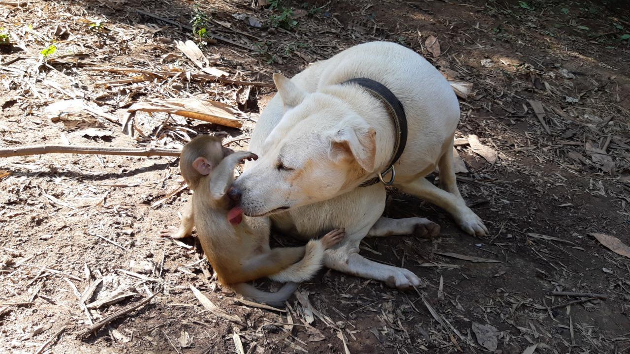 นางทิพย์วิมล อรรคสูรย์ อายุ 54 ปี อยู่บ้านเดิ่น ต.ด่านซ้าย อ.ด่านซ้าย เจ้าของหมาและลิง เปิดเผยว่า เมื่อสามเดือนที่ผ่านมา เห็นลูกลิงเพศผู้อายุประมาณ 1 เดือน พลัดหลงมาจากไหนไม่รู้และกระโดดลงสระน้ำที่บ้านสวนของตนเองหลังวัดโพนชัย จนหมาที่บ้านชื่อเจ้าฮิปปี้ อายุ 2 ปี เห่าตลอดเวลา ลูกชายเห็นจึงรีบกระโดลงสระน้ำว่ายน้ำไปช่วยลูกลิงนำมาเลี้ยง ตั้งชื่อว่า “บุญหลง” ปัจจุบันอายุ 3 เดือนแล้ว จนเจ้าฮิปปี้ที่เลี้ยงไว้สนิทกับลูกลิงจนเป็นเพื่อนสนิทกัน ทั้งคู่จะชอบคลุกคลีเล่นเหมือนเด็ก ลูกลิงก็ชอบที่จะปีนขึ้นไปนั่งที่หลังและบนหัวเจ้าฮิปปี้ จนเจ้าฮิปปี้เกิดความรำคาญอยู่เป็นประจำ แต่ก็ยังรักกันดีหยอกล้อกัน แถมทั้งคู่ไม่ดุร้ายอีกด้วย